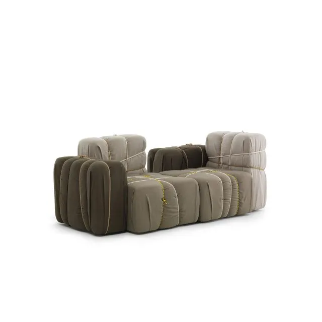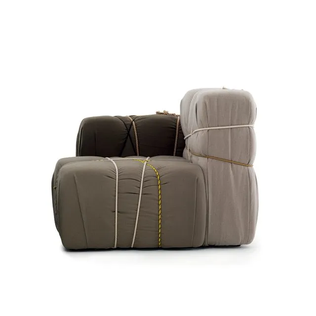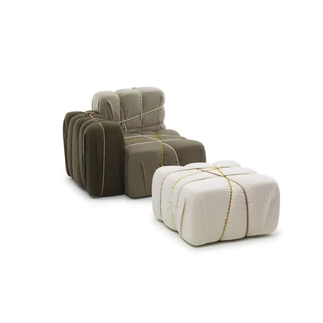 Contropakko - это мягкое кресло с несъемным чехлом. Подлокотник всегда расположен справа. Доступен только один цветовой вариант. Вдохновленное классической композицией из бумажных коробок, перевязанных лентами и веревочками. Удобное и игривое, оно подойдет для любой обстановки.