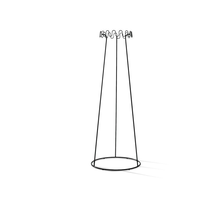 Crown - это элегантная напольная вешалка для одежды, предназначенная для того, чтобы органично вписаться в любую обстановку. Эта вешалка для одежды, изготовленная с особой тщательностью, имеет тонкую конструкцию из хромированных или лакированных стальных прутьев, обеспечивающую долговечность и изысканную эстетику.