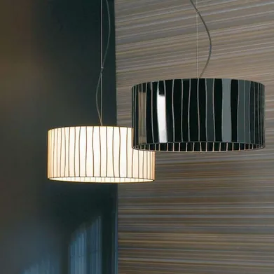 Подвесной светильник с абажуром из стекла.