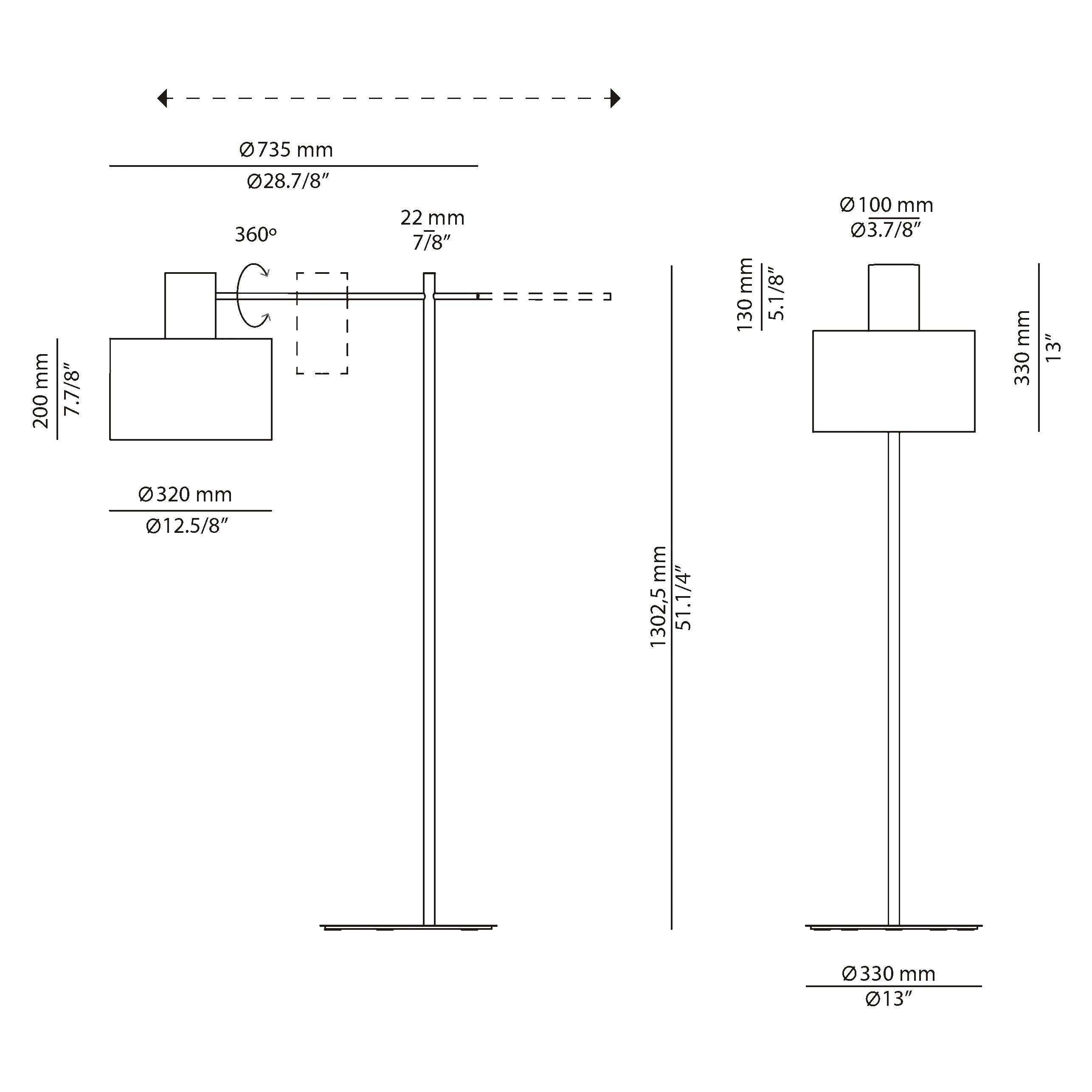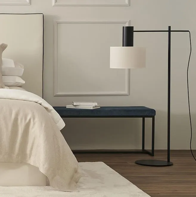 Металлический торшер с цилиндрической головкой.