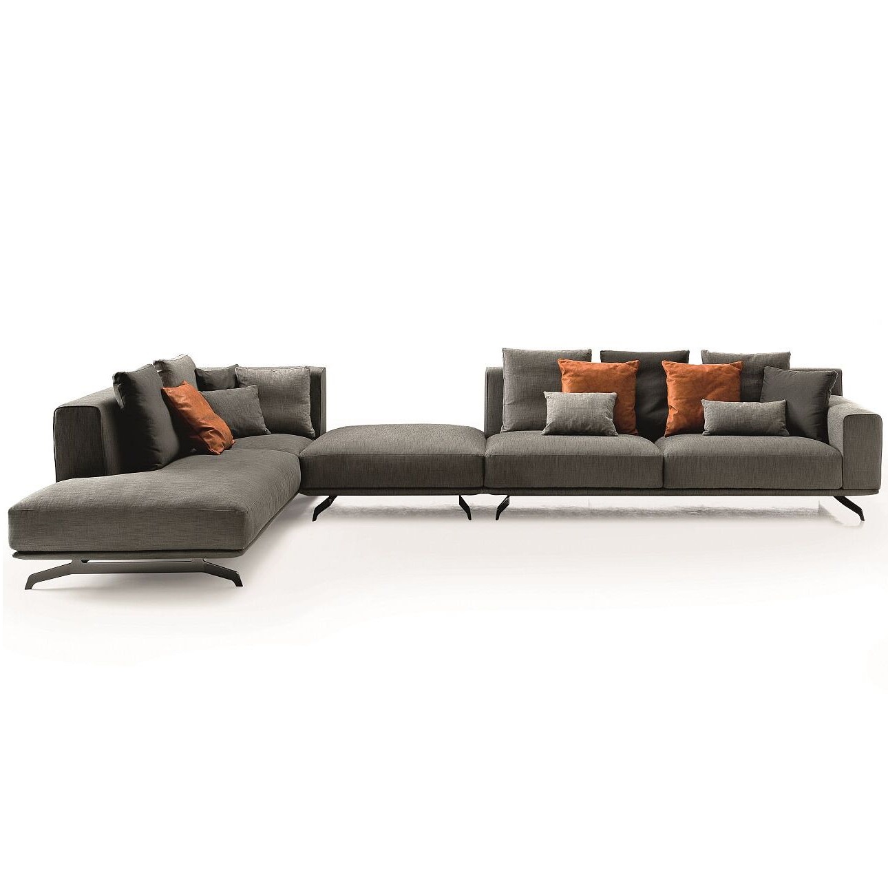 С помощью ножек весь диван или композицию можно приподнять на 5 см. Для ножек доступны три варианта отделки: хром, хромоникелевый сплав или оксидированное железо.