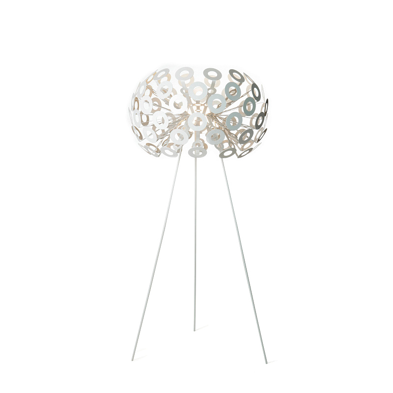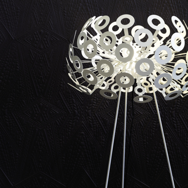 Дизайн торшера Dandelion вдохновлен растением, которое создает знаменитый и поэтичный "одуванчиковый снег" из пушистых, похожих на вату семян, когда на них дует порыв ветра.