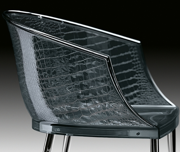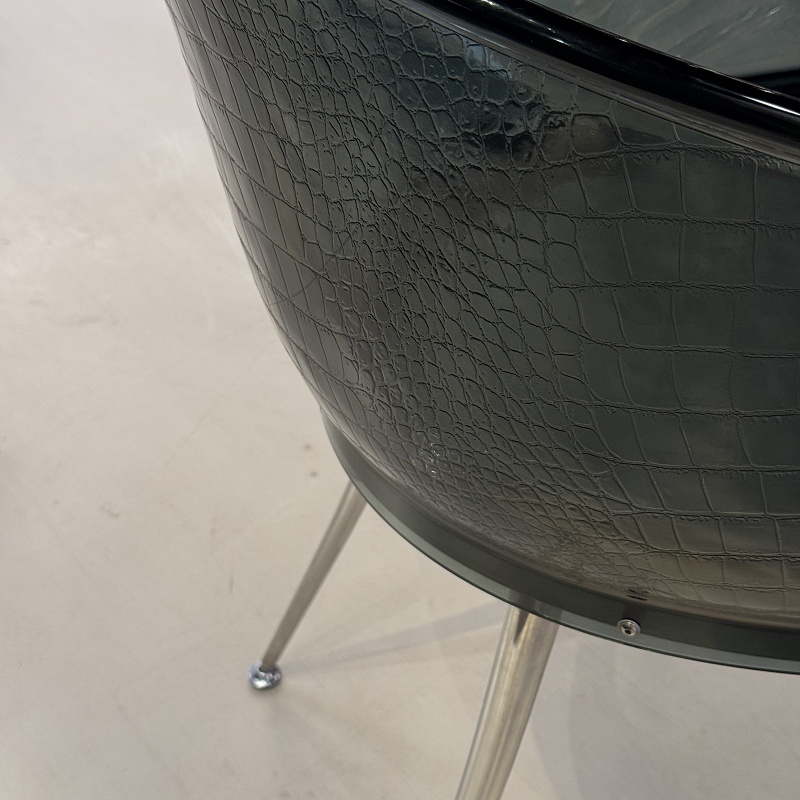 Современная хромированная рама дополняет текстурный акрил с принтом в виде кожи ящерицы, который придает дизайну неожиданный экзотический оттенок.