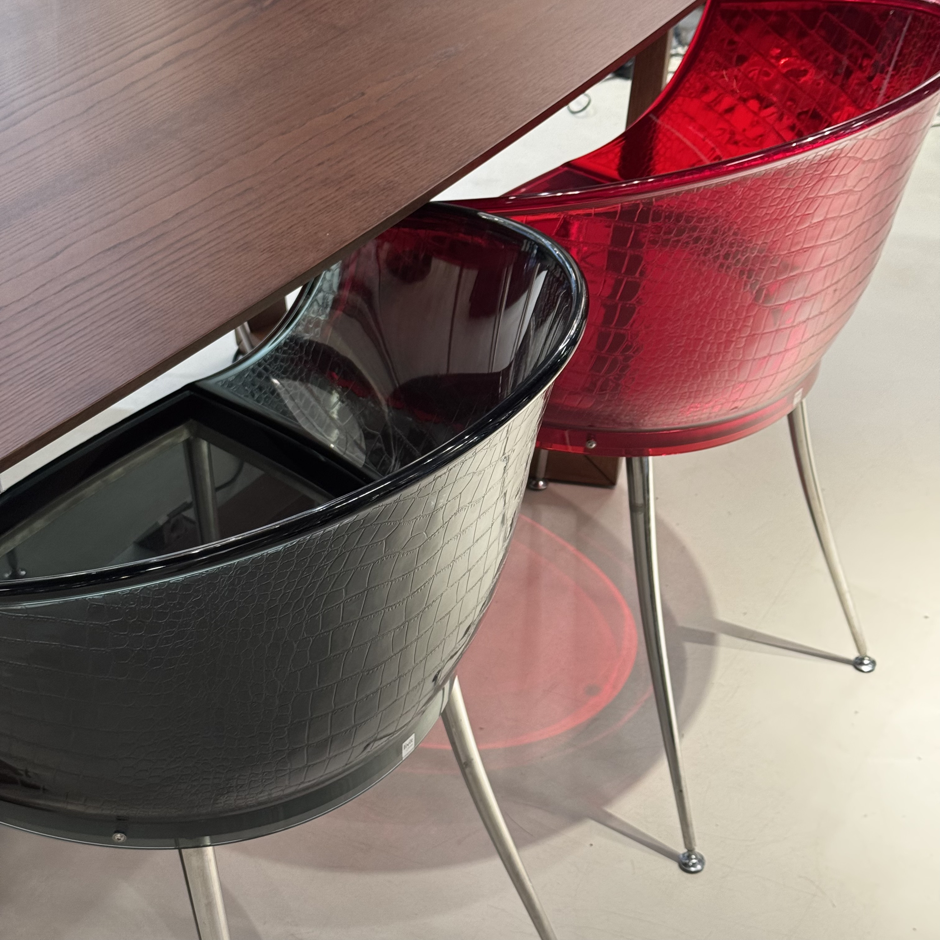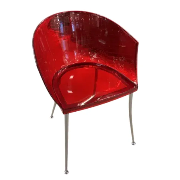 Купить стулья Dandy из текстурного акрила итальянской фабрики Fiam можно в салоне Lampadario . В наличии на экспозиции стулья в красном (2 шт) и дымчатом (3 шт) цветах.