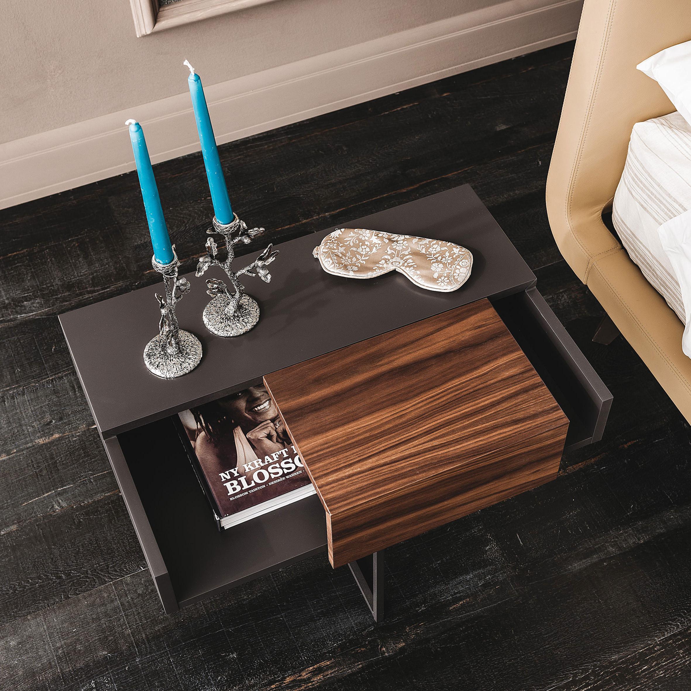 Прикроватная тумбочка из графитового (GF 69) тисненого лакированного дерева с раздвижной дверцей из ореха Каналетто (Северная Каролина) или