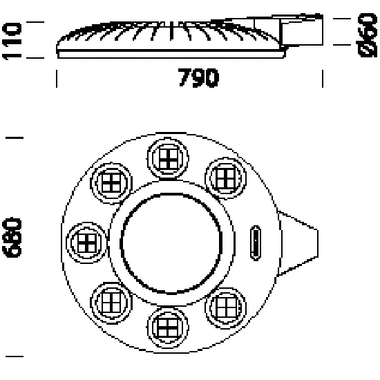 Корпус/Рама: Из литого под давлением алюминия, с малой долей поверхности, подверженной действию ветра. Ребра охлаждения входят в конструкцию крышки.