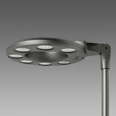 Городское светодиодное освещение воплощает в себе все ценности, с которыми мы связываем технический прогресс: светильники с пониженным энергопотреблением, свет которых дарит новое очарование ночному городу, а внешний вид украшает городскую среду в дневные часы. Новые формы для новой светотехники. Благодаря использованию светодиодов был создан очень элегантный дизайн: круглая форма светильника обеспечивает оптимальное светораспределение, ребра для охлаждения - правильный теплоотвод. Дизайн, способный принести новый "зрительный комфорт" в любой контекст. "DISCO" продвигает новую концепцию освещения городской среды, делает более заметным процесс ее обновления. ОП гарантирует светотехническому проекту заметность и престиж. Disco спроектирован для полноценного использования в городском освещении технического потенциала светодиодов, связанного прежде всего с энергосбережением и высоким качеством света. Дизайн светильника, такой далекий от традиционных форм уличных фонарей, придает городской среде необычный вид, отвечающий потребности в обновлении городского пейзажа. Наилучшим образом решаются также требования по равномерному светораспределению и теплоотводу.