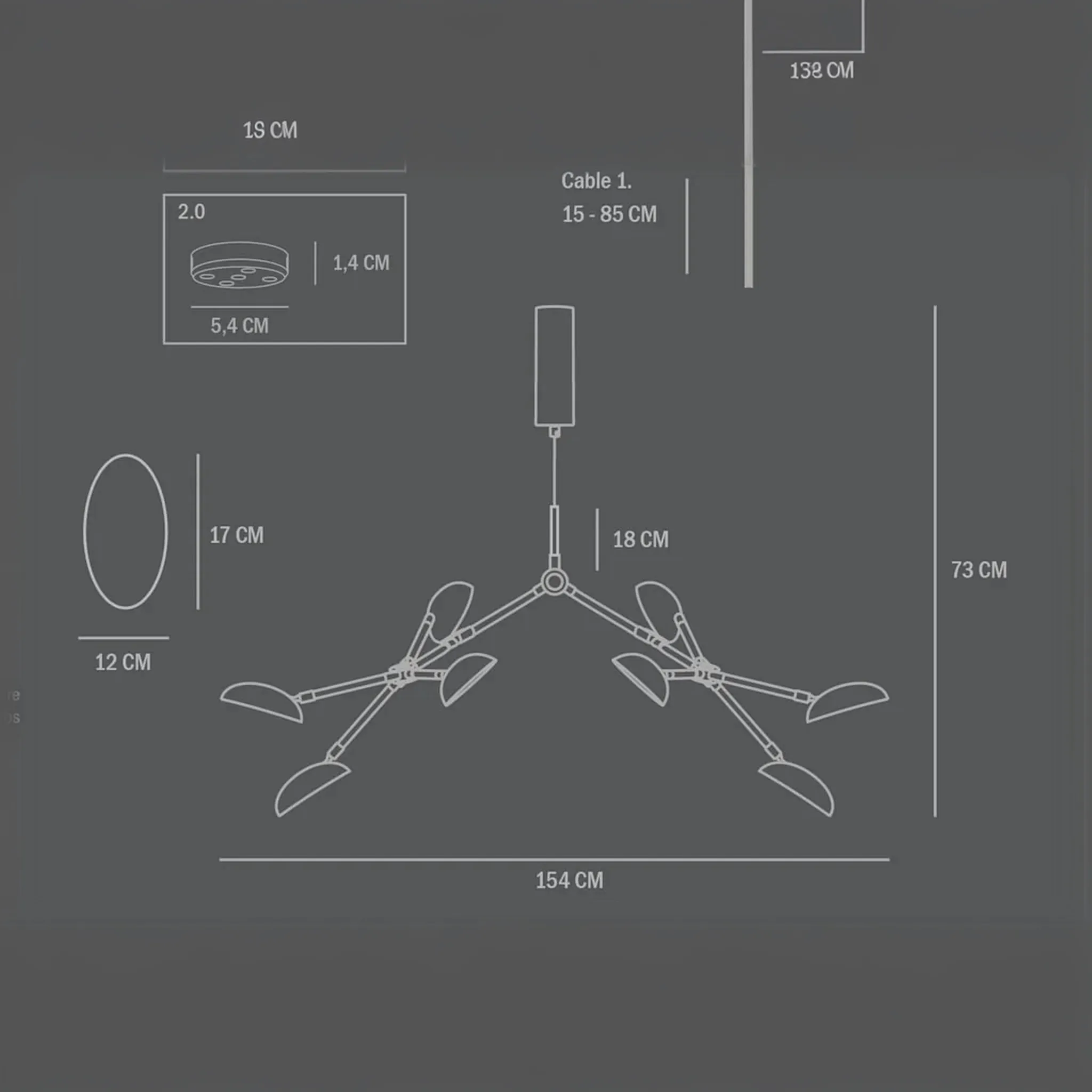 Изготовленная с тщательным вниманием к деталям, люстра доступна в необработанном оксидированном исполнении из трех изысканных металлов - латуни, бронзы и обожженной черноты. Каждый металлический корпус с покрытием тщательно обработан вручную.
