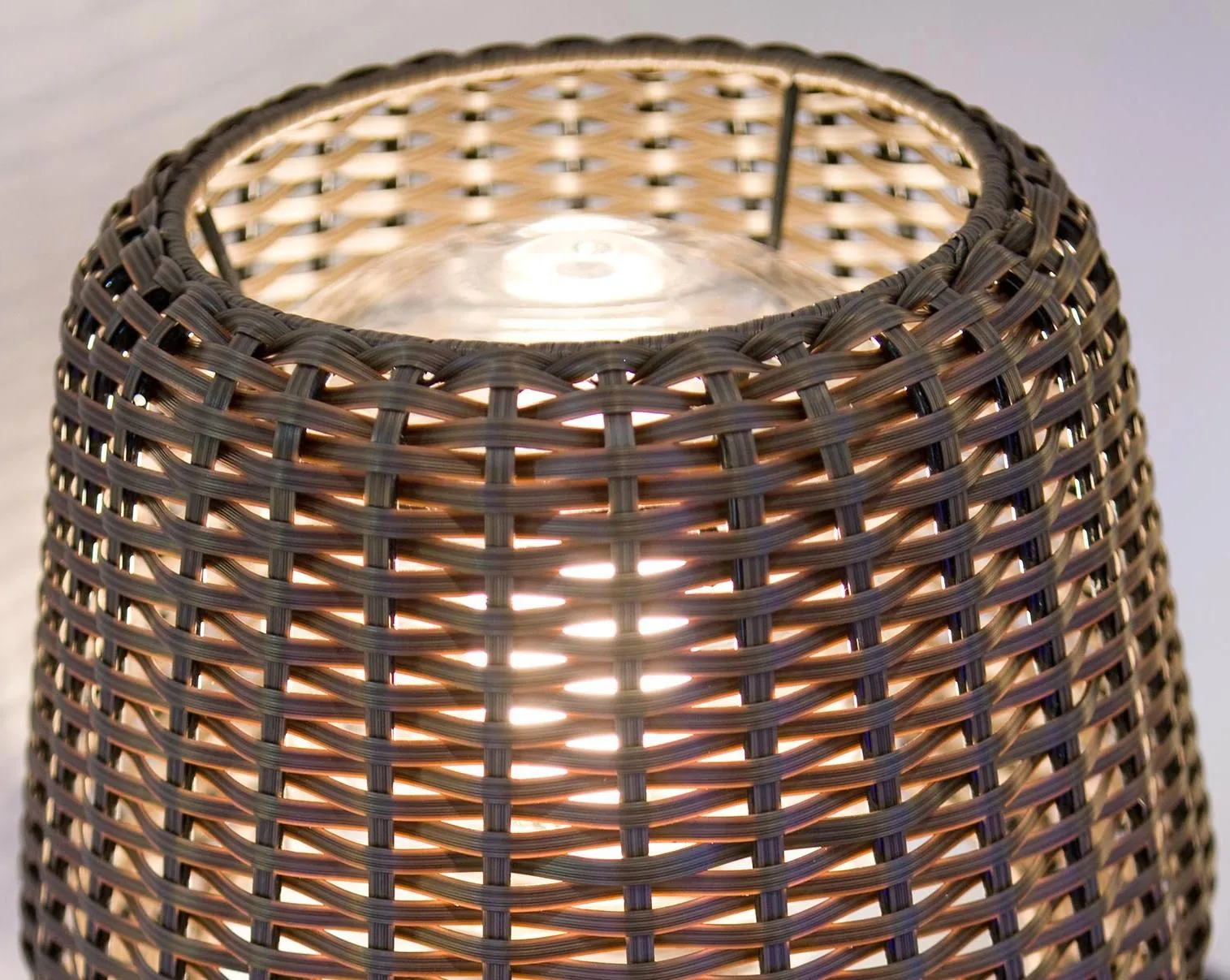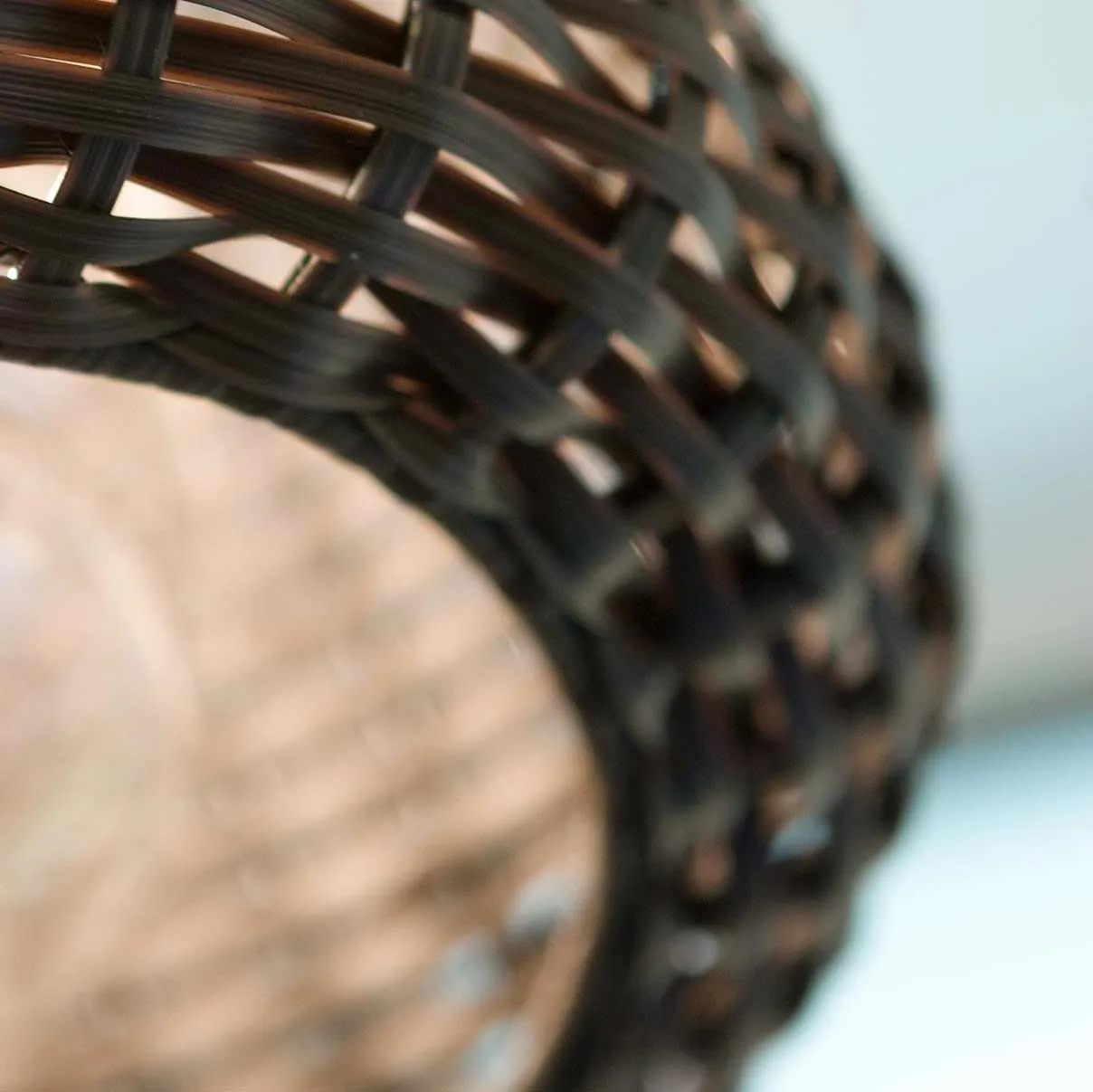 Абажур из синтетического ротанга ручной работы. Доступен в коричневом цвете.