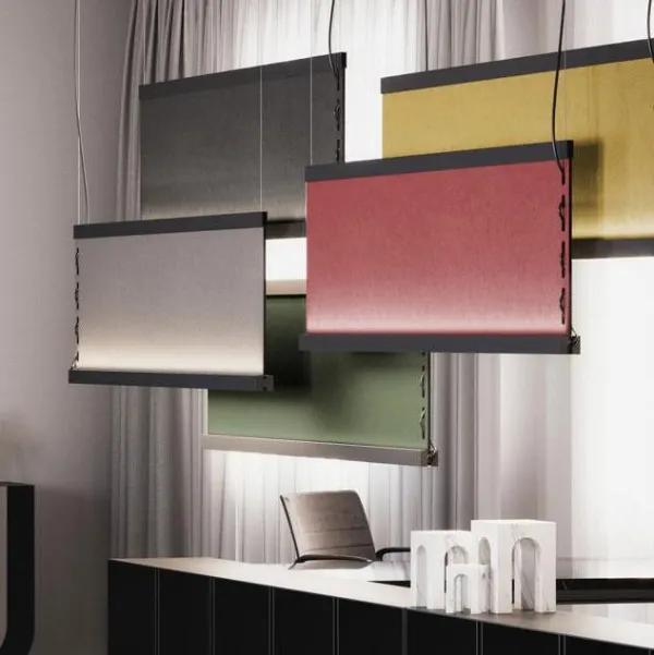Etnia - это коллекция подвесных светильников для помещений со звукопоглощающими свойствами, состоящая из панелей из переработанного ПЭТ, обтянутых цветной тканью. Корпус из черного анодированного алюминия имеет верхний рассеиватель из опалового ПММА (полиметилметакрилата) и нижний рассеиватель из микропризматического ПММА. Панели облицованы звукопоглощающими тканями различных цветов и доступны с индивидуальной отделкой.