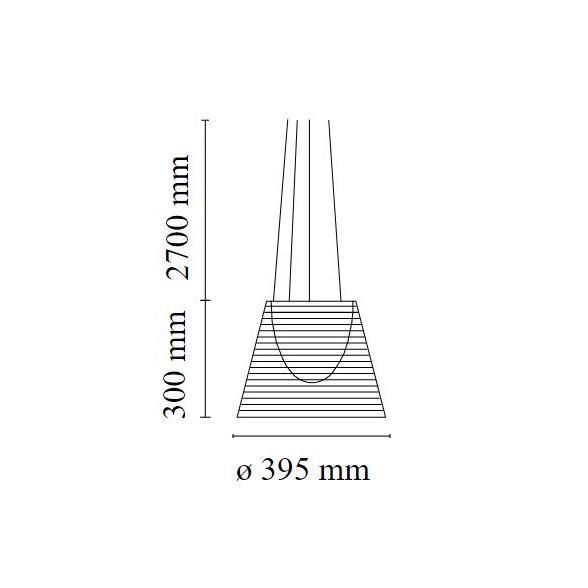 Подвесной светильник, обеспечивающий рассеянный свет. Внутренний рассеиватель из ПК (поликарбоната) с опалово-белым покрытием. Наружные рассеиватели из прозрачного или дымчатого ПММА (полиметилметакрилата) и серебра или бронзы на внутренней поверхности, покрытые вакуумным алюминием. Три троса из нержавеющей стали длиной 4000 мм для подвешивания диффузора в сборе.