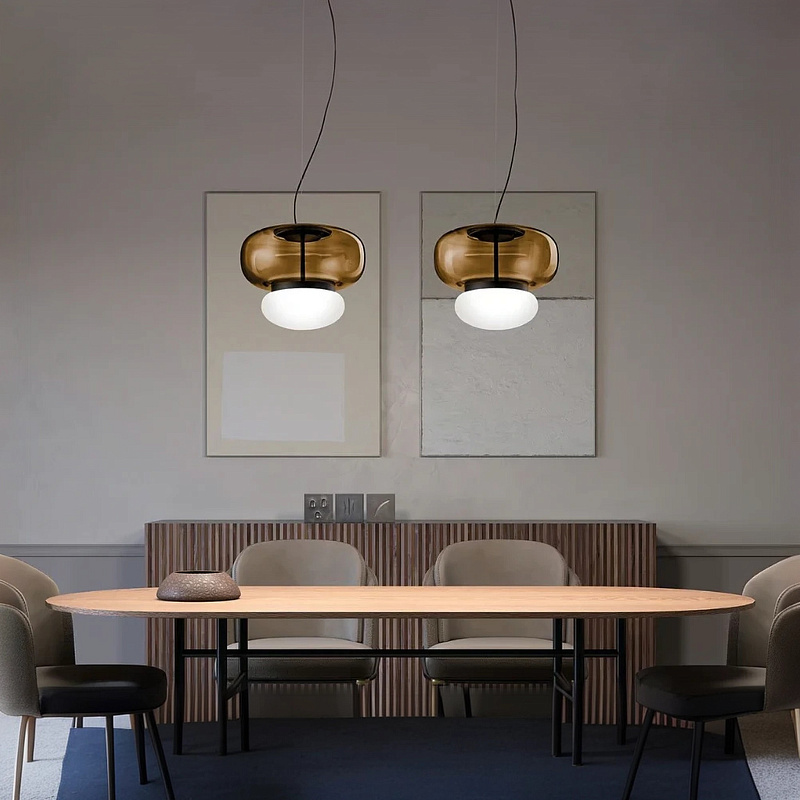 Верхний плафон светильника изготовлен из прозрачного стекла и создает ощущение легкости и воздушности, визуально расширяя пространство. Нижний плафон, напротив, выполнен в белой матовой отделке. Он не только идеально скрывает интегрированный LED-источник света, но и обеспечивает мягкое, равномерное и абсолютно неослепляющее освещение, что особенно важно для создания уютной, располагающей атмосферы в любом помещении.