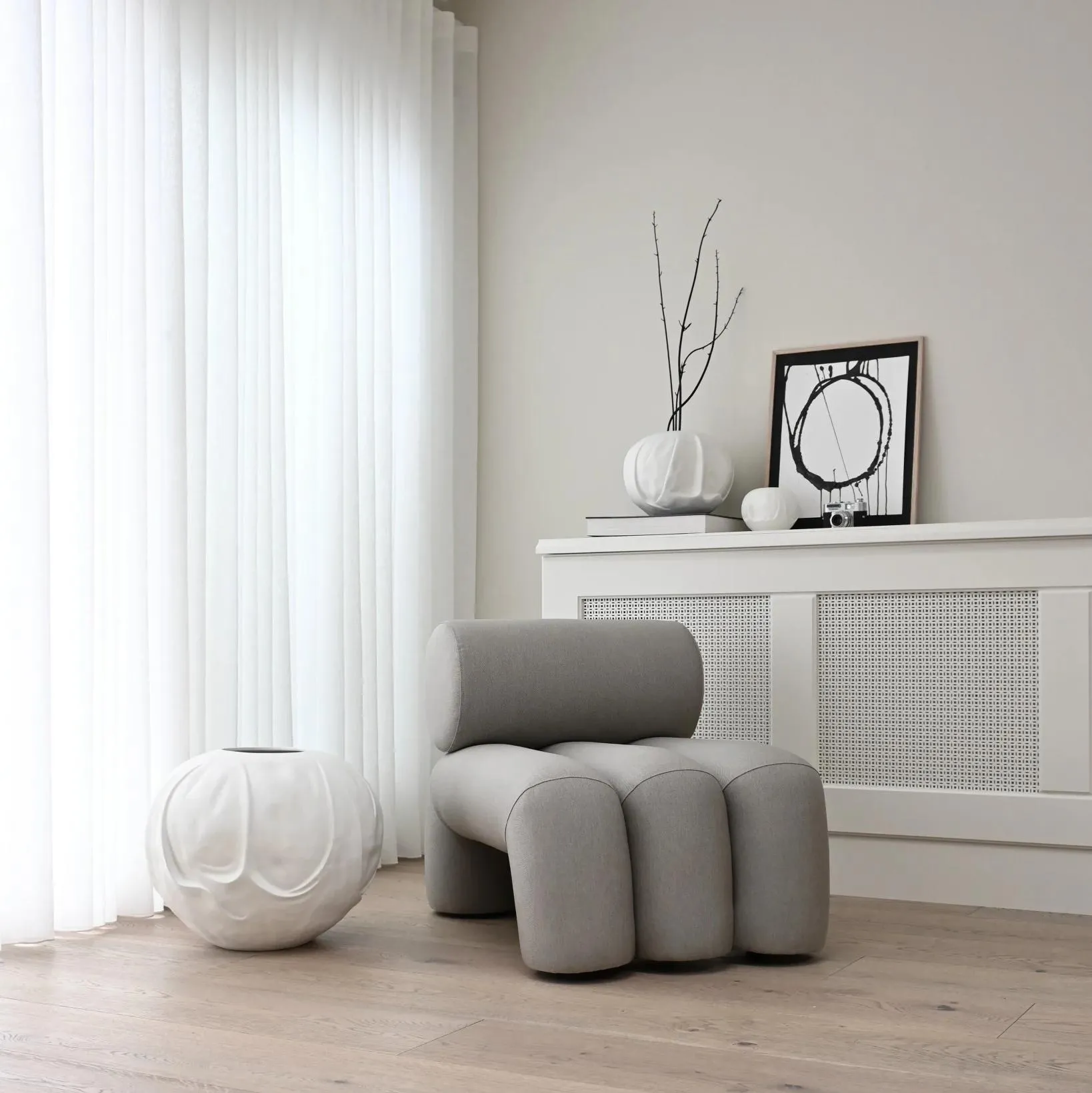 Кресло для отдыха Foku , вдохновленное безмятежным мастерством японских садов Дзен, привносит в коллекцию органическую гармонию. Его рифленое сиденье повторяет песчаные узоры дзен-садов, сочетая геометрическую точность с природным вдохновением. Благодаря слоям мягкой пены и объемному дизайну кресло Foku настолько же удобно, насколько и визуально привлекательно.