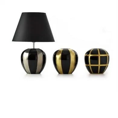 Ножка лампы - фарфор черного цвета с полосатым декором.