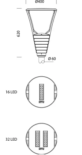 Рассеиватель: прозрачное каленое стекло толщиной 4мм, стойкое к перепадам температур и ударопрочное (UNI-EN 12150-1 : 2001).