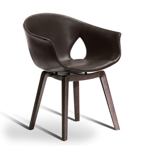 Основание кресла Ginger изготовлено из массива ясеня с крючковой опорой из окрашенной в черный цвет стали. Оно доступно в фиксированном или поворотном исполнении с механизмом “возврата”, который позволяет креслу поворачиваться на 360° и возвращаться в исходное положение.