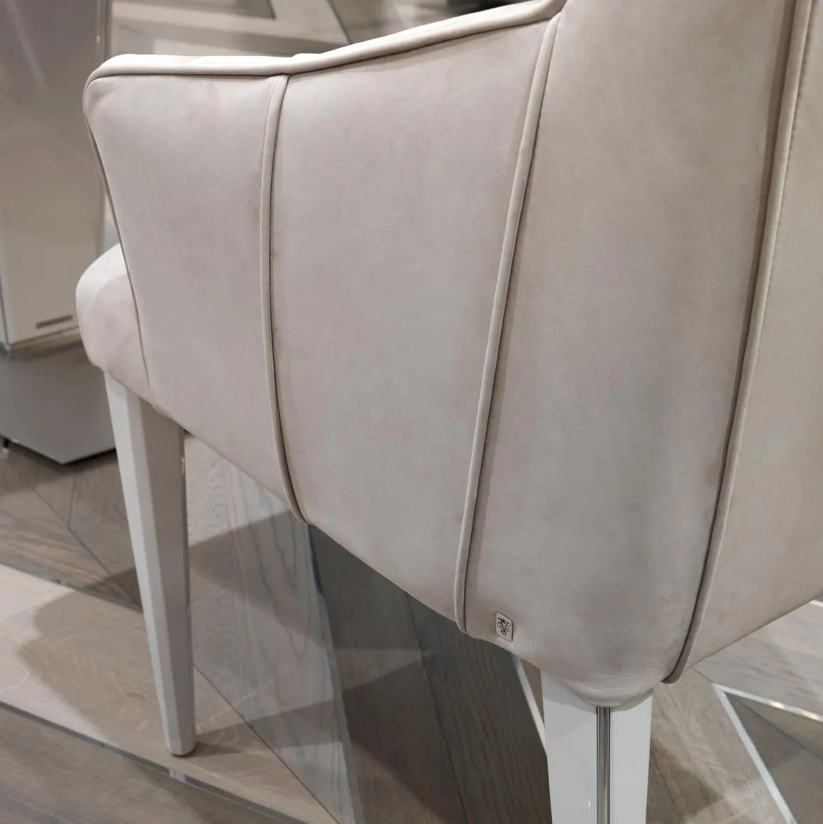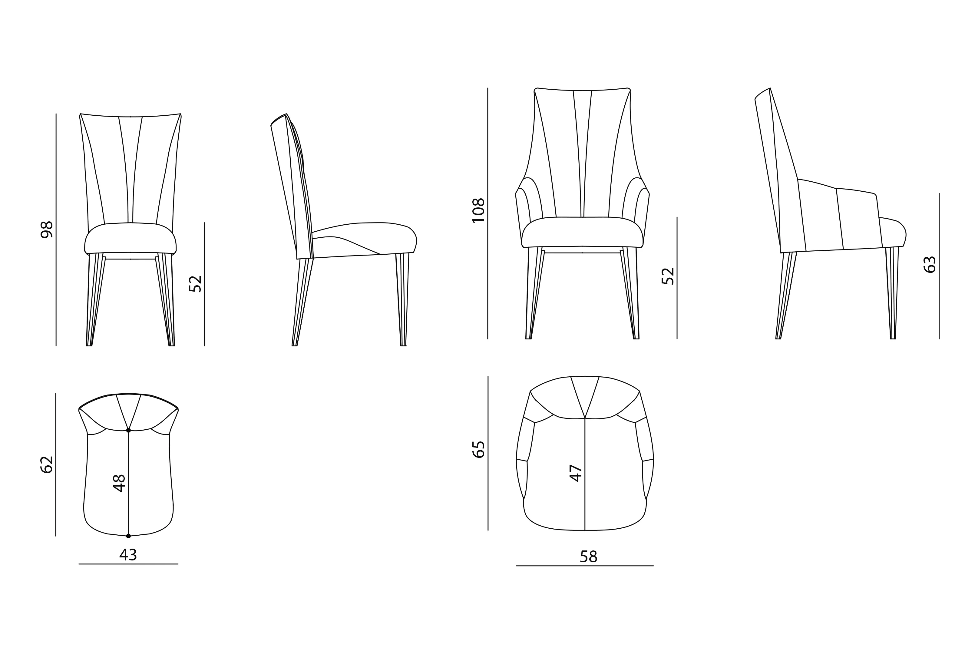 Каркас спинки из профилированной фанеры, соединенной с каркасом сиденья, ножки из массива бука. Пружинная система сиденья с витыми эластичными ремнями. Обивка из кожи или ткани. Обивка сиденья из пенополиуретана. Внутренняя часть спинки выполнена из пенополиуретана и акриловых волокон, отдельные части обиты по отдельности. Внешняя часть покрыта слоем полиуретана толщиной 10 мм. Ножки из полированного лакированного бука с вертикальной вставкой из полированного металла толщиной 5 мм, доступны с хромированной или золотой отделкой. Также доступны в высоком исполнении с подлокотниками. Выпускается также с основанием из полированной нержавеющей стали с 5 обработанными лазером спицами шириной 8 мм, с алюминиевыми поворотами и хромированными дисками, которые доступны в ассортименте с металлической отделкой.