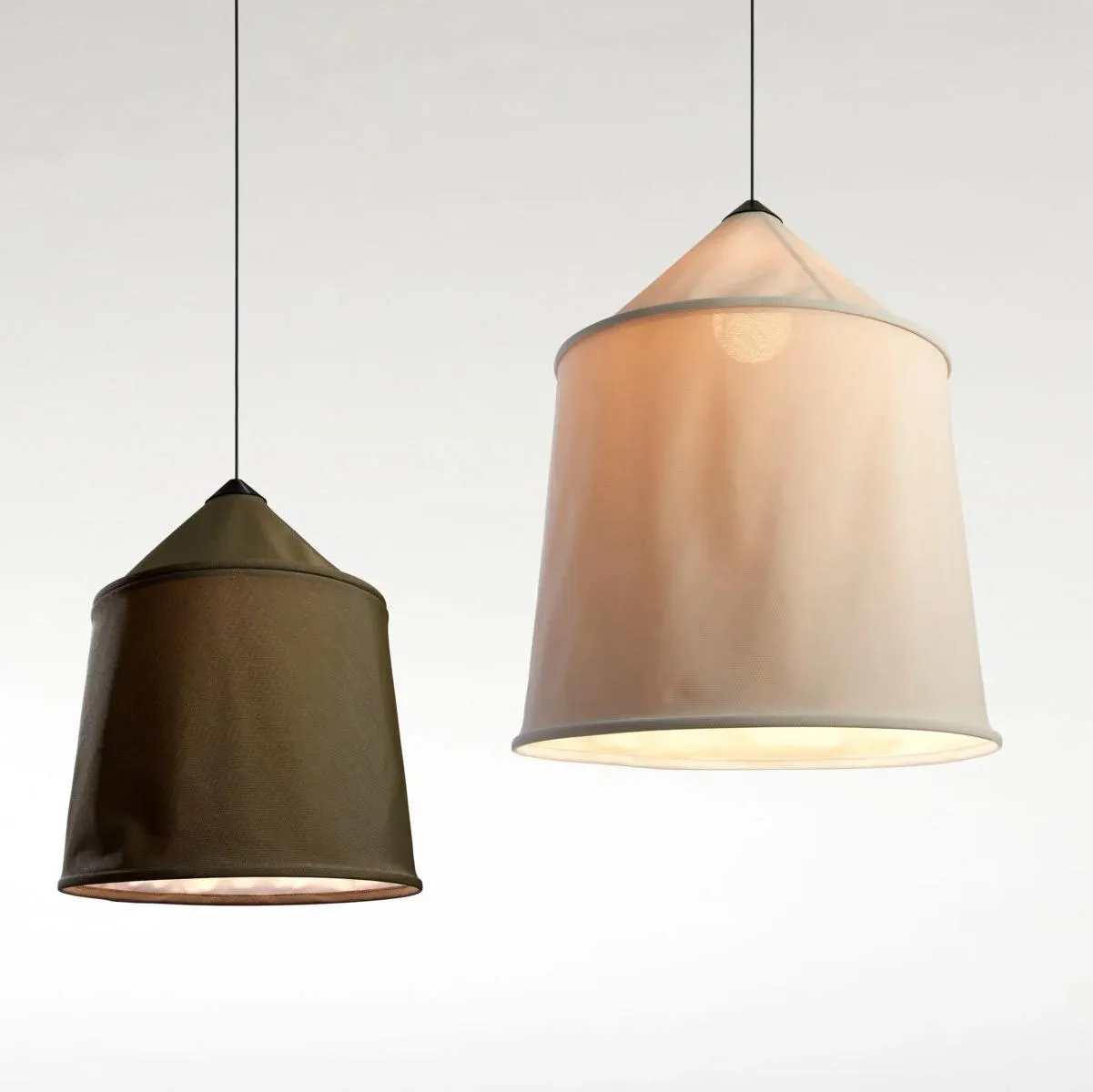 Эта новая коллекция получила свое название в честь шатров бедуинов Северной Африки и вдохновлена разнообразием их тканей и форм. Абажур textilene доступен в трех размерах и четырех различных цветах, с глухим внутренним пространством для оптимизации качества направленного вниз освещения.