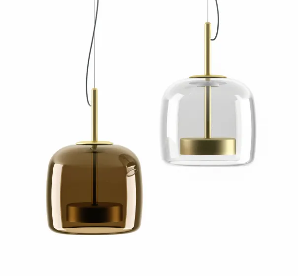 JUBE - это коллекция в винтажном стиле, состоящий из четырех типов светильников: подвесные, настенные, настольные, напольные со светодиодным источником света. Три размера рассеивателя в пяти цветах: дымчатый, жженая земля, старый зеленый, хрусталь и аметист, а в двух больших размерах есть возможность комбинировать второй рассеиватель из белого стекла, чтобы он выглядел как единое целое.