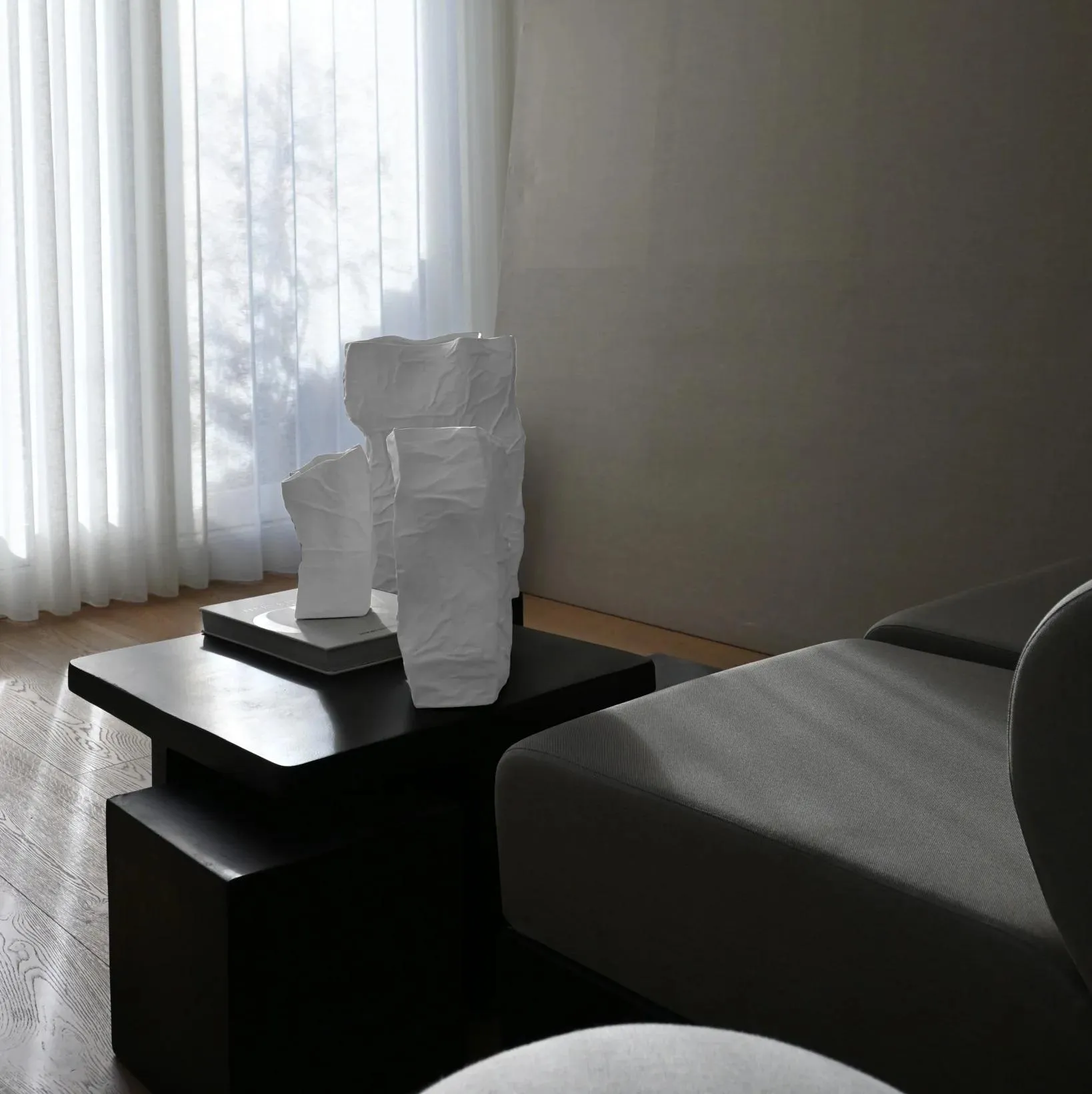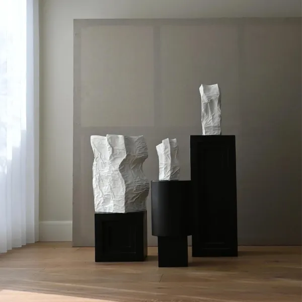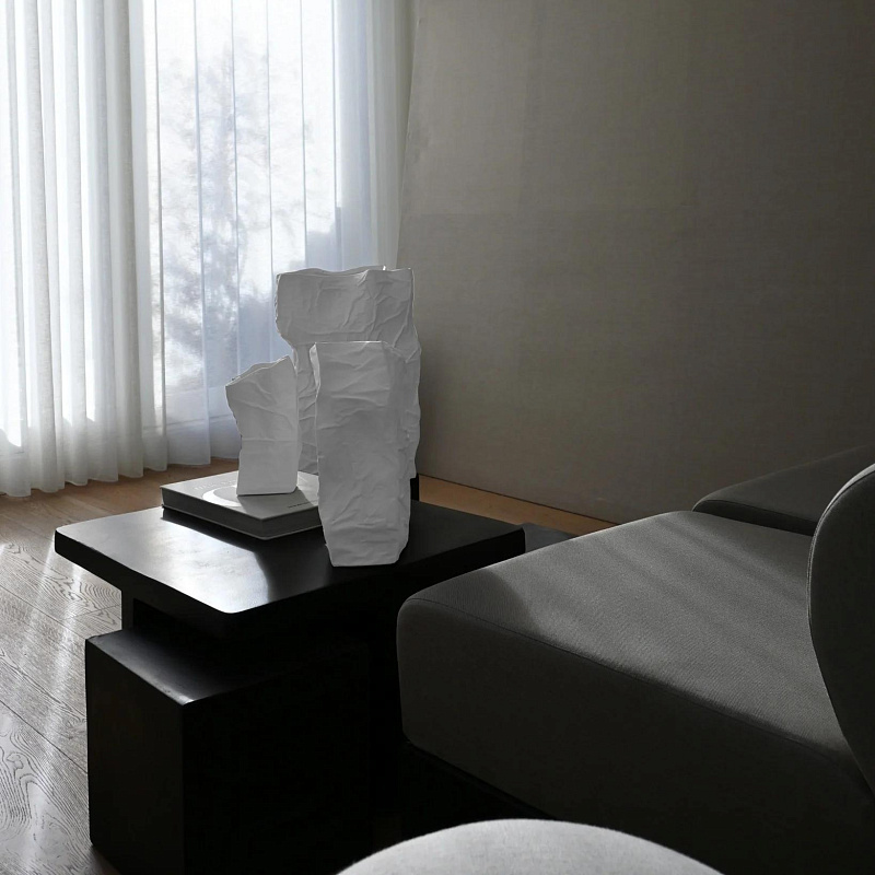 Вазы Kami имеют неровную поверхность с изгибами и трещинами, выполненную в форме обратной стороны из мятой бумаги с хрустящими краями. Ваза подчеркивает красивый органичный дизайн с элементами ручной работы.