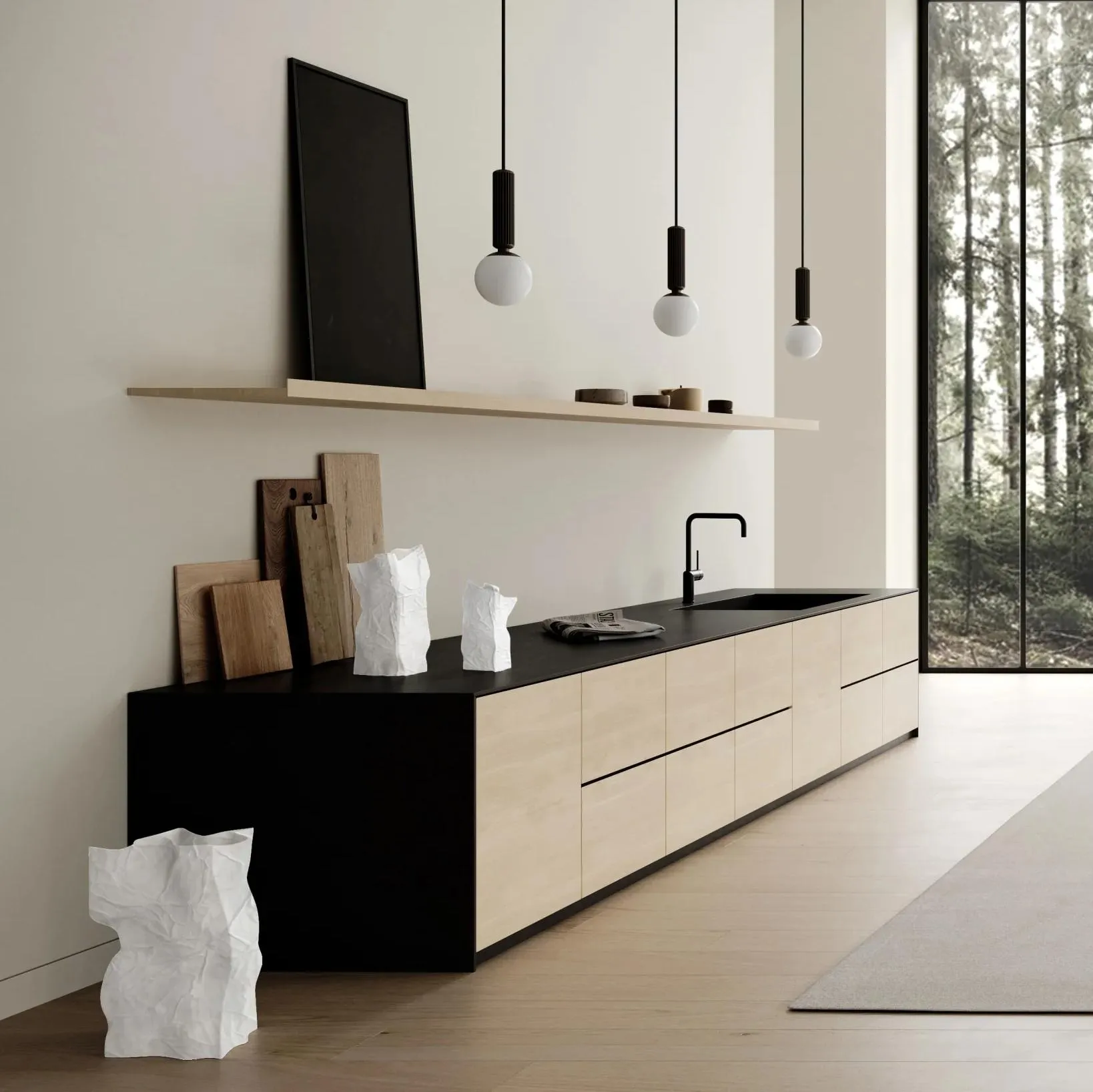 Kami выпускается в трех размерах и двух цветах. Выбирайте между белоснежным, как хрустящая кость, оттенком, имитирующим смятые бумажные пакеты, или цветом хрома с блестящей зеркальной поверхностью, придающим интерьеру элегантный и современный вид.