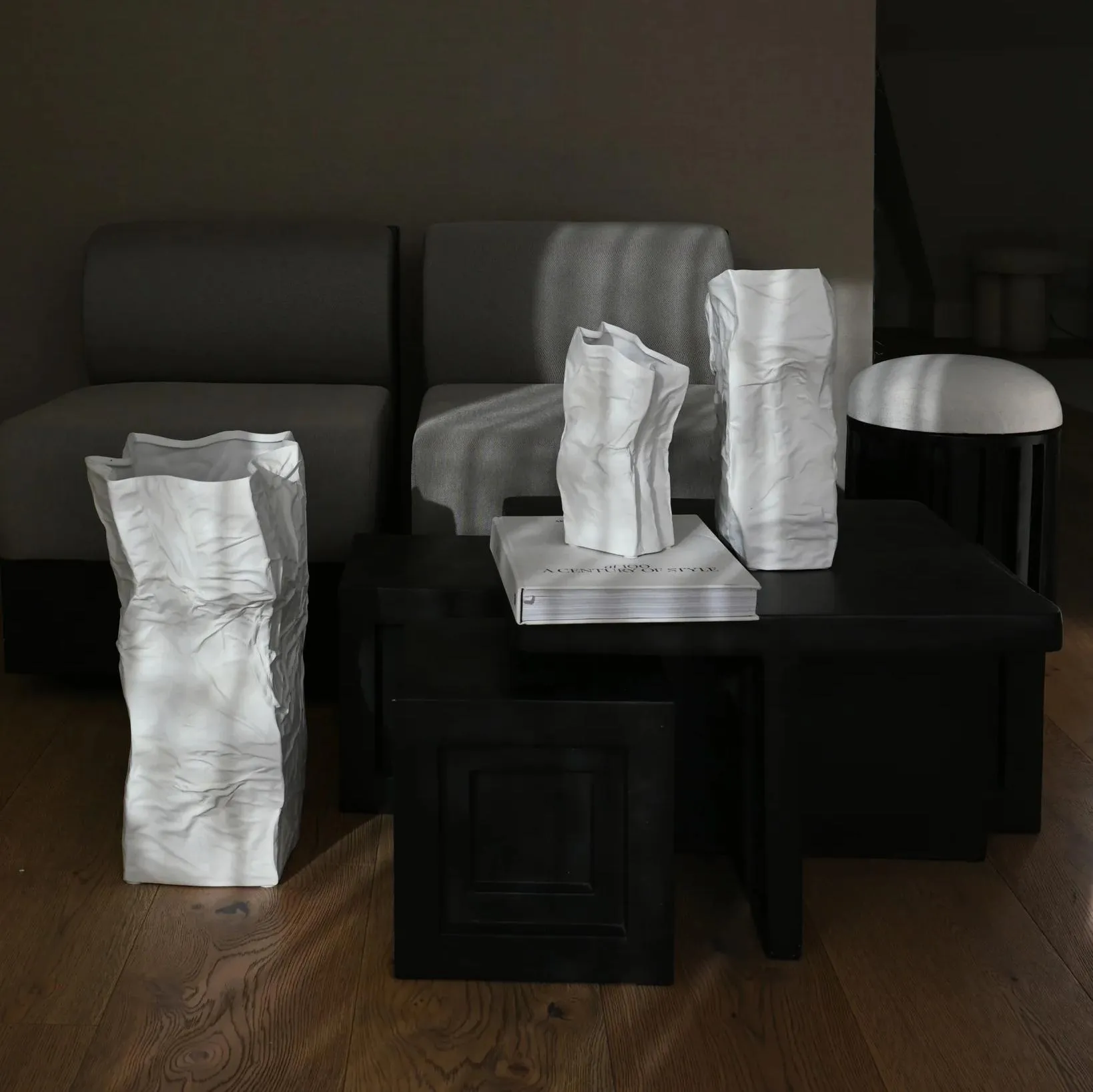 Дизайн Kami Vase , вдохновленный бумажными пакетами, подчеркивает эстетику хрустящих и рассыпающихся бумажных пакетов.