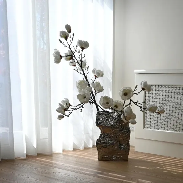 Вазы Kami имеют неровную поверхность с изгибами и трещинами, выполненную в форме обратной стороны из мятой бумаги с хрустящими краями. Ваза подчеркивает красивый органичный дизайн с элементами ручной работы.