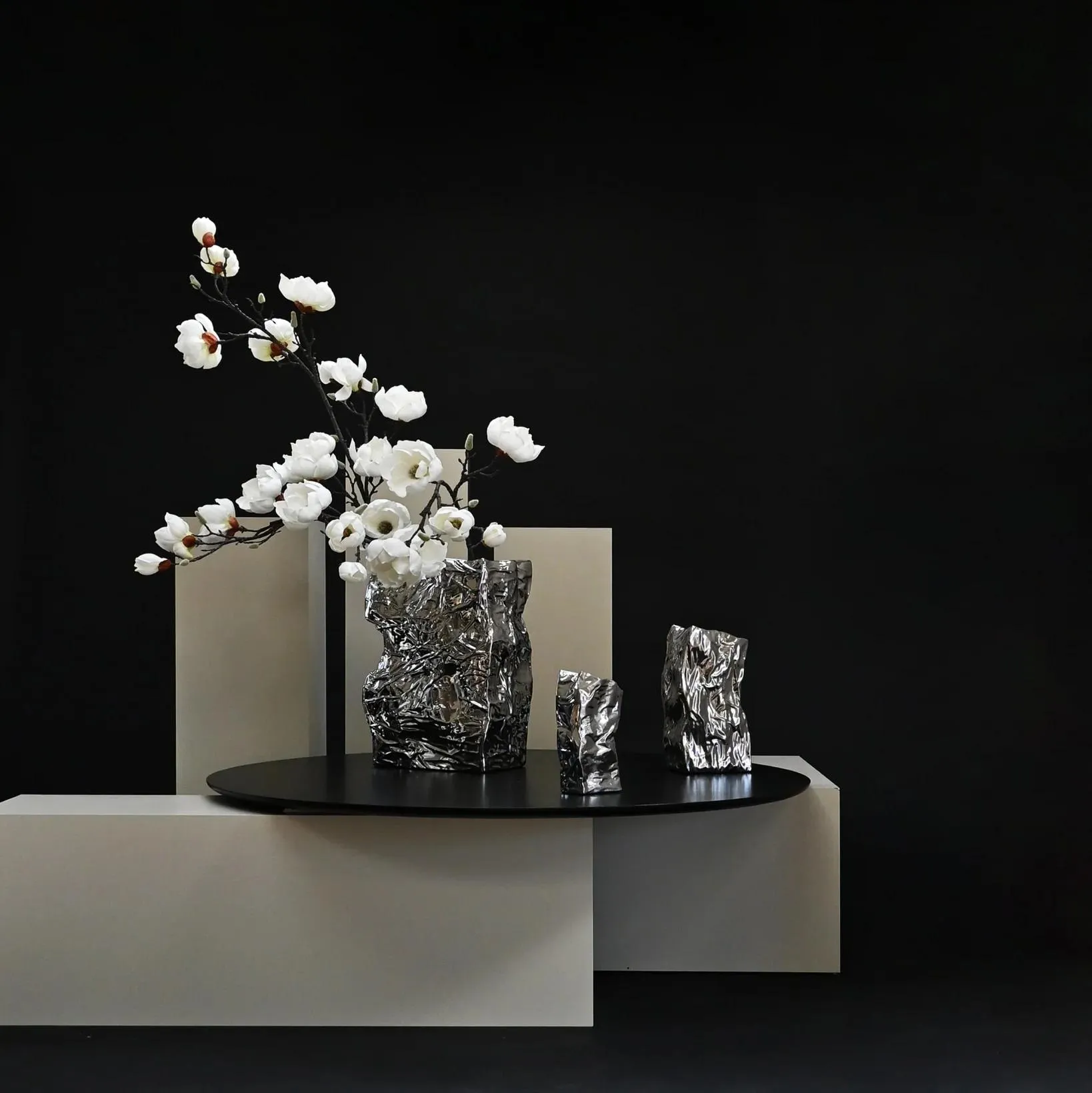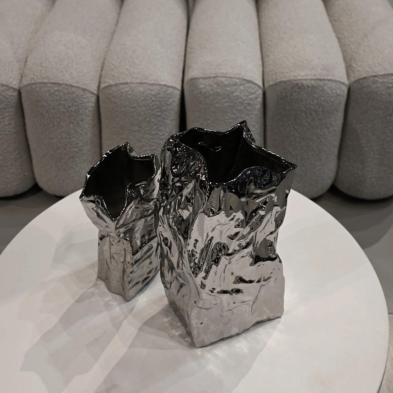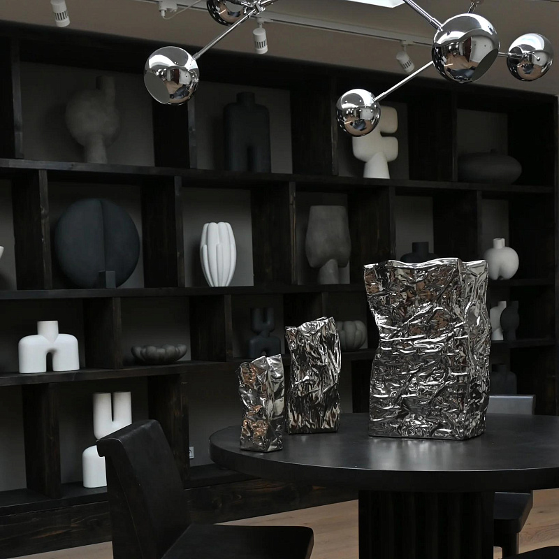 Вазы Kami имеют неровную поверхность с изгибами и трещинами, выполненную в форме обратной стороны из мятой бумаги с хрустящими краями. Ваза подчеркивает красивый органичный дизайн с элементами ручной работы.