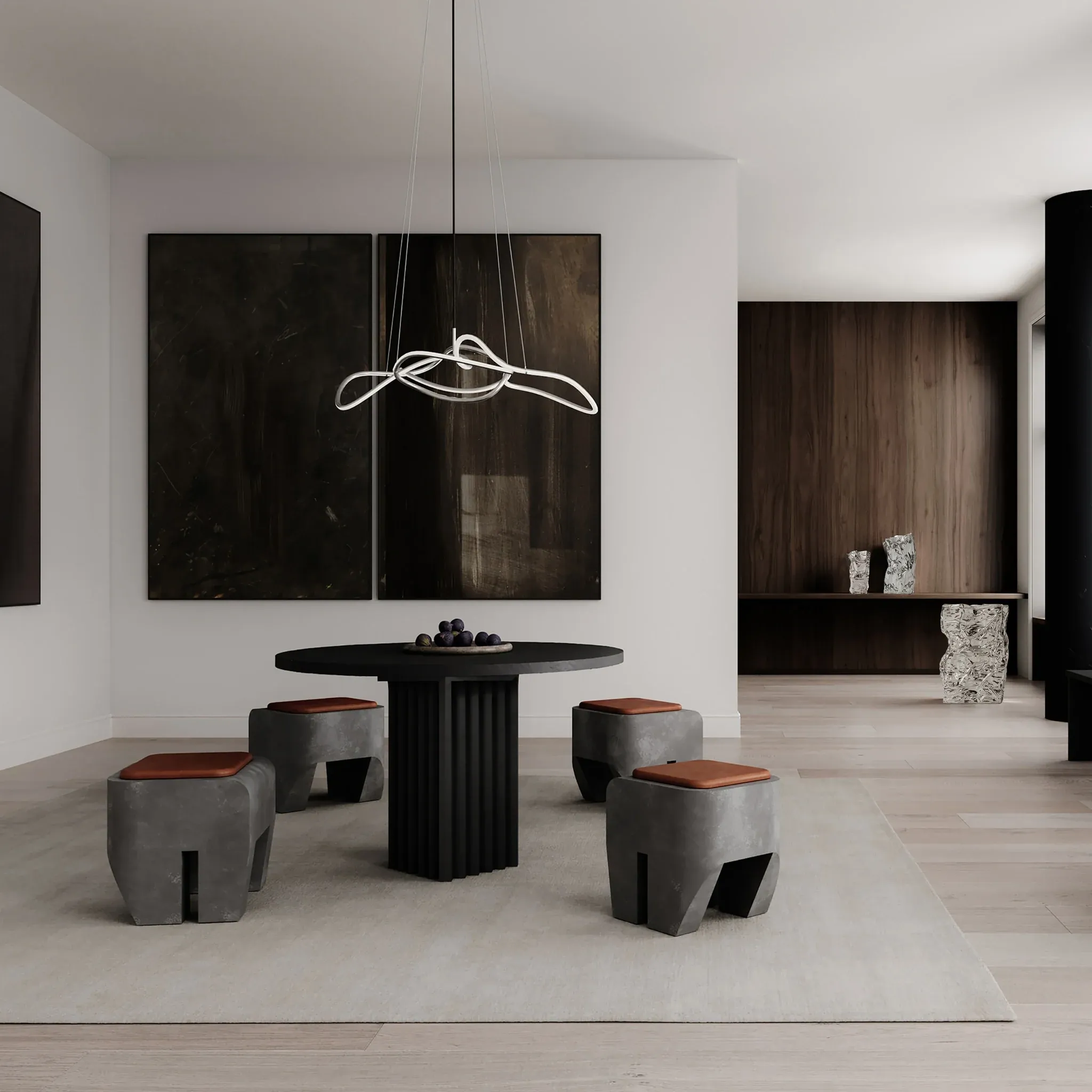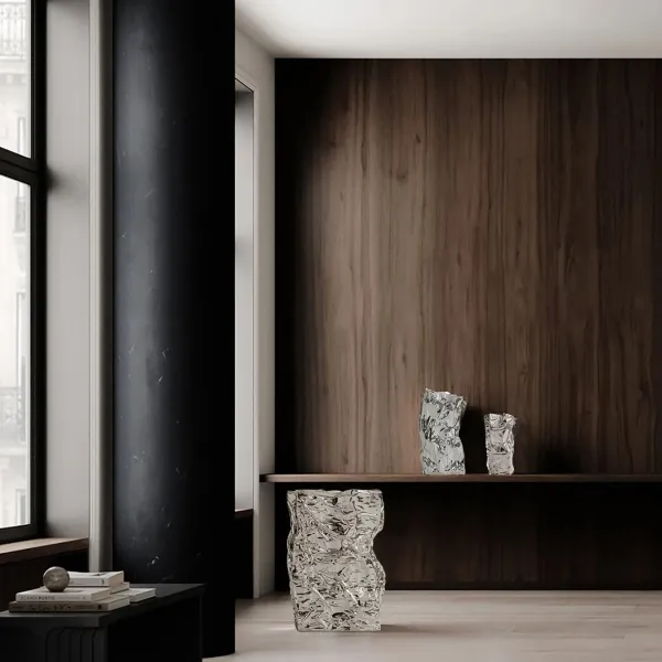 Kami выпускается в трех размерах и двух цветах. Выбирайте между белоснежным, как хрустящая кость, оттенком, имитирующим смятые бумажные пакеты, или цветом хрома с блестящей зеркальной поверхностью, придающим интерьеру элегантный и современный вид.