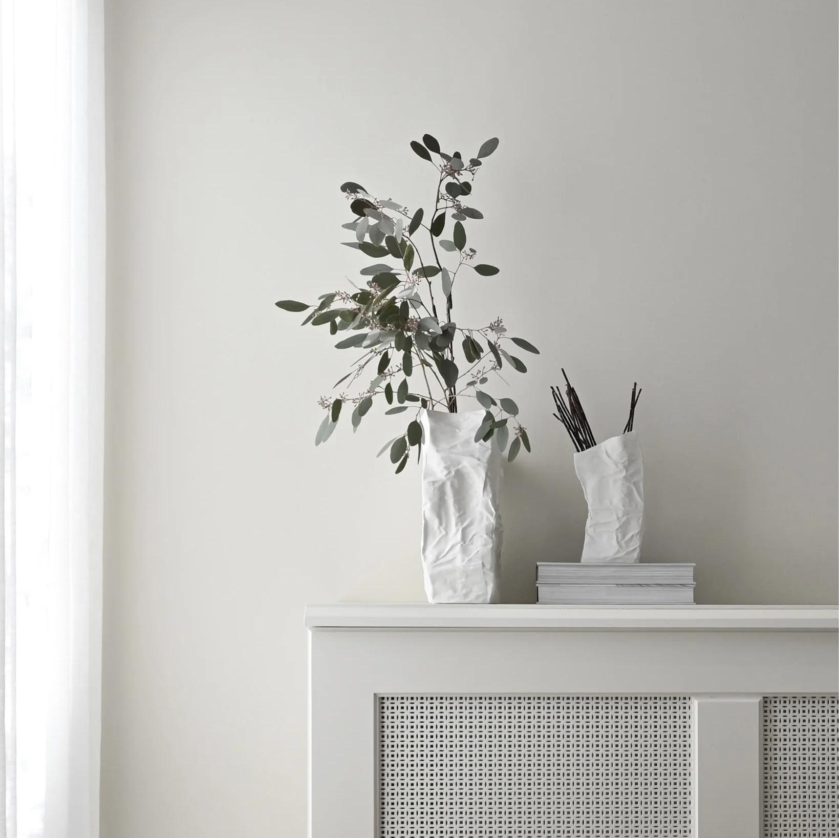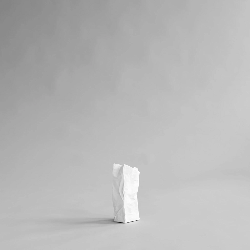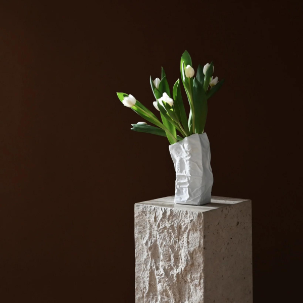 Дизайн Kami Vase , вдохновленный бумажными пакетами, подчеркивает эстетику хрустящих и рассыпающихся бумажных пакетов.