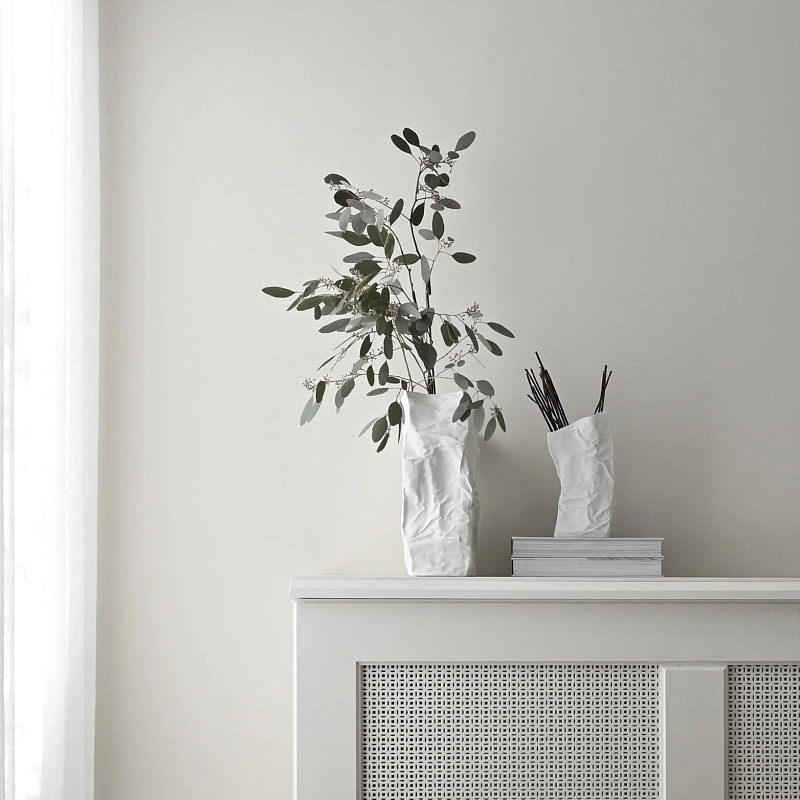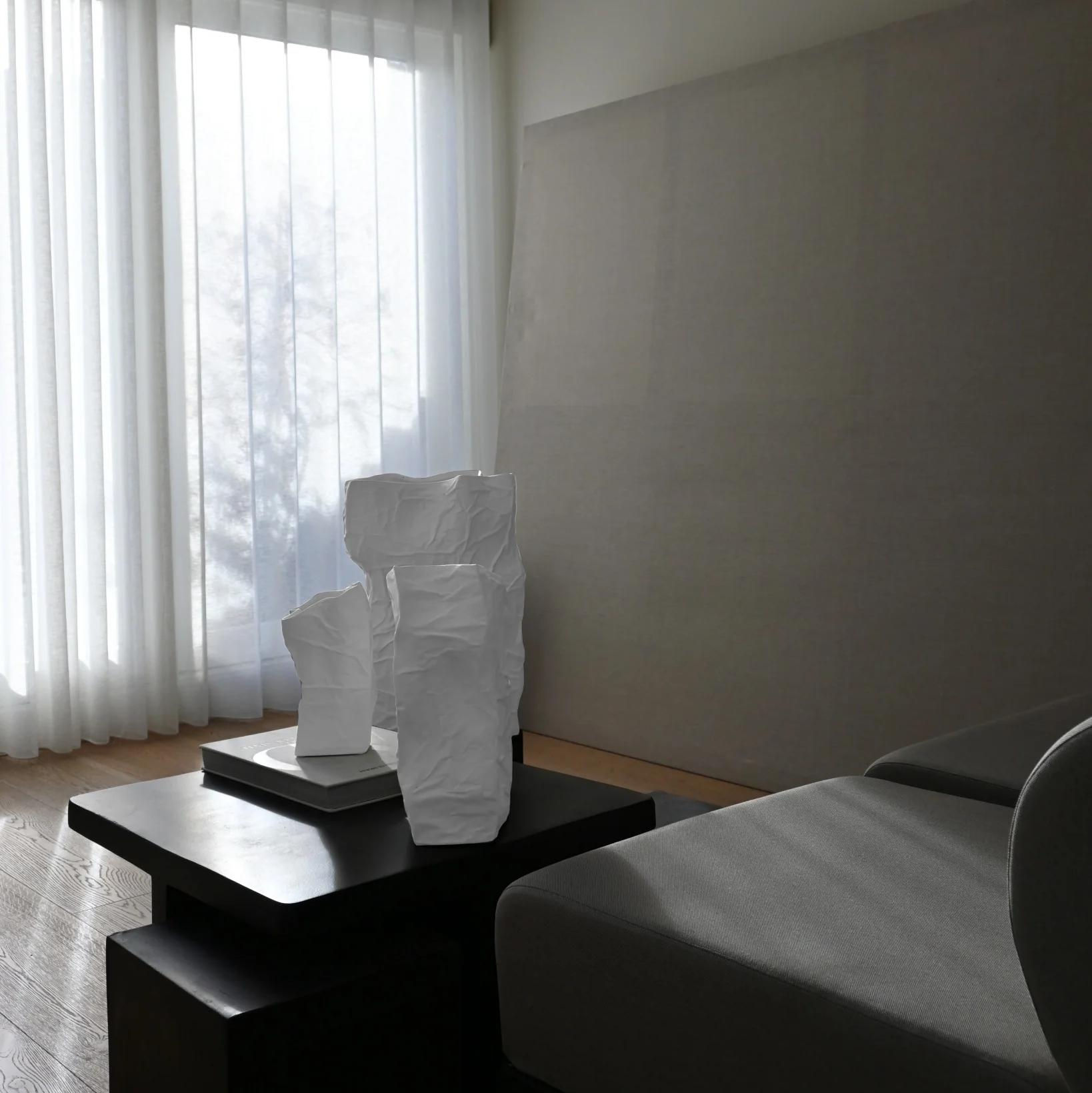 Вазы Kami имеют неровную поверхность с изгибами и трещинами, выполненную в форме обратной стороны из мятой бумаги с хрустящими краями. Ваза подчеркивает красивый органичный дизайн с элементами ручной работы.