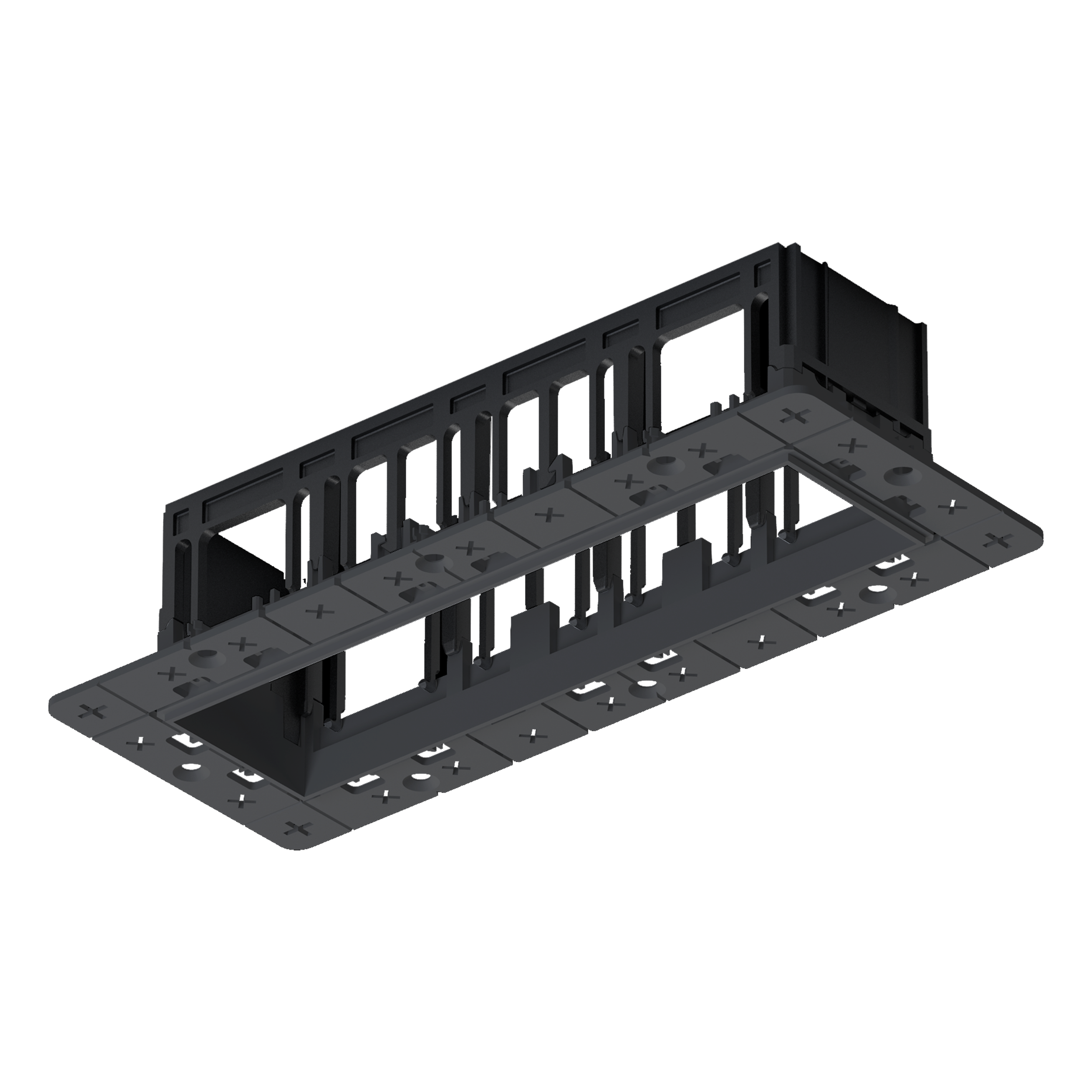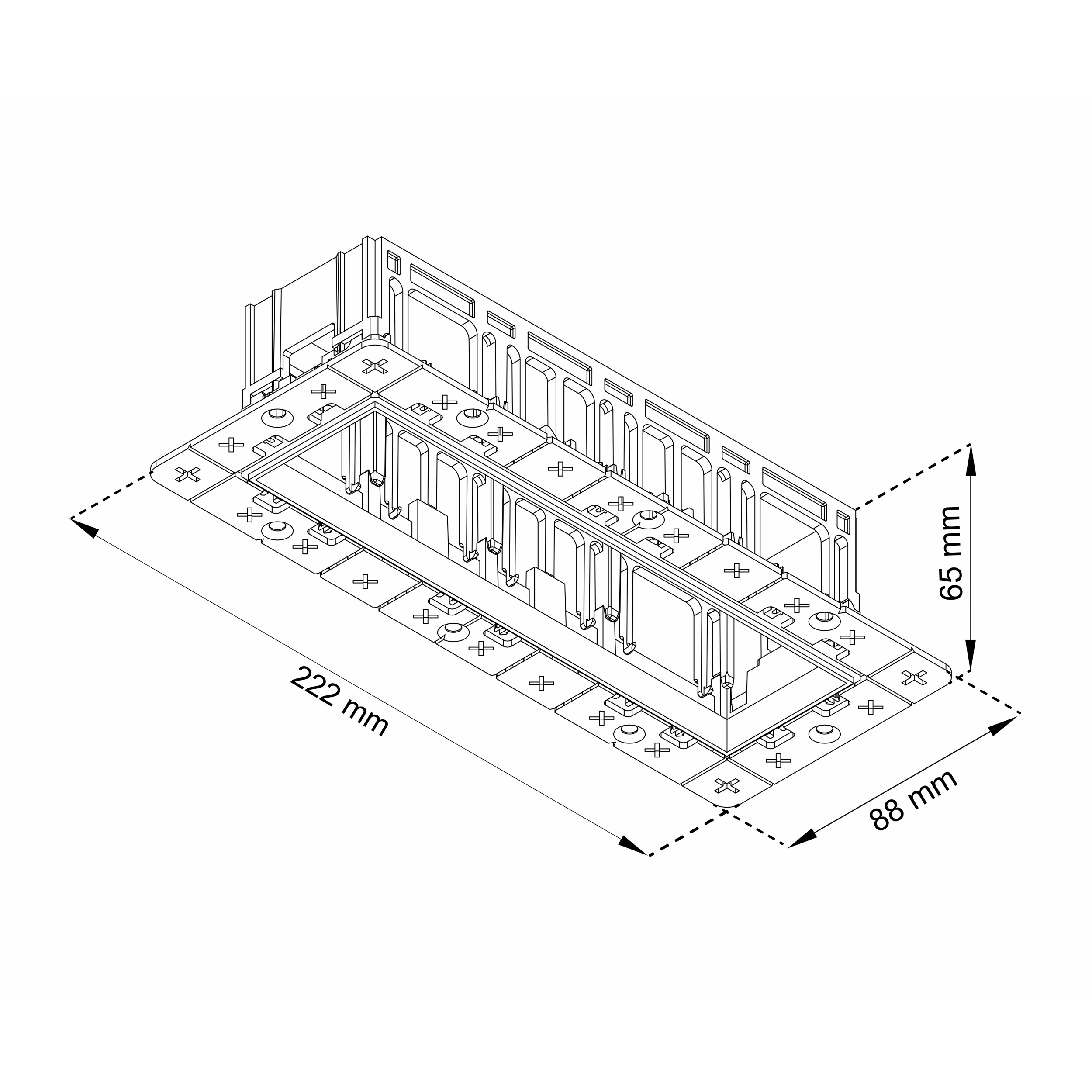 Каркас встраиваемый безрамочный на 4 модульных светильника, черный, монтажное отверстие (прямоугольное) 198х65 мм, общий размер 222х88 мм, размер видимой части 182х48 мм, высота 65 мм