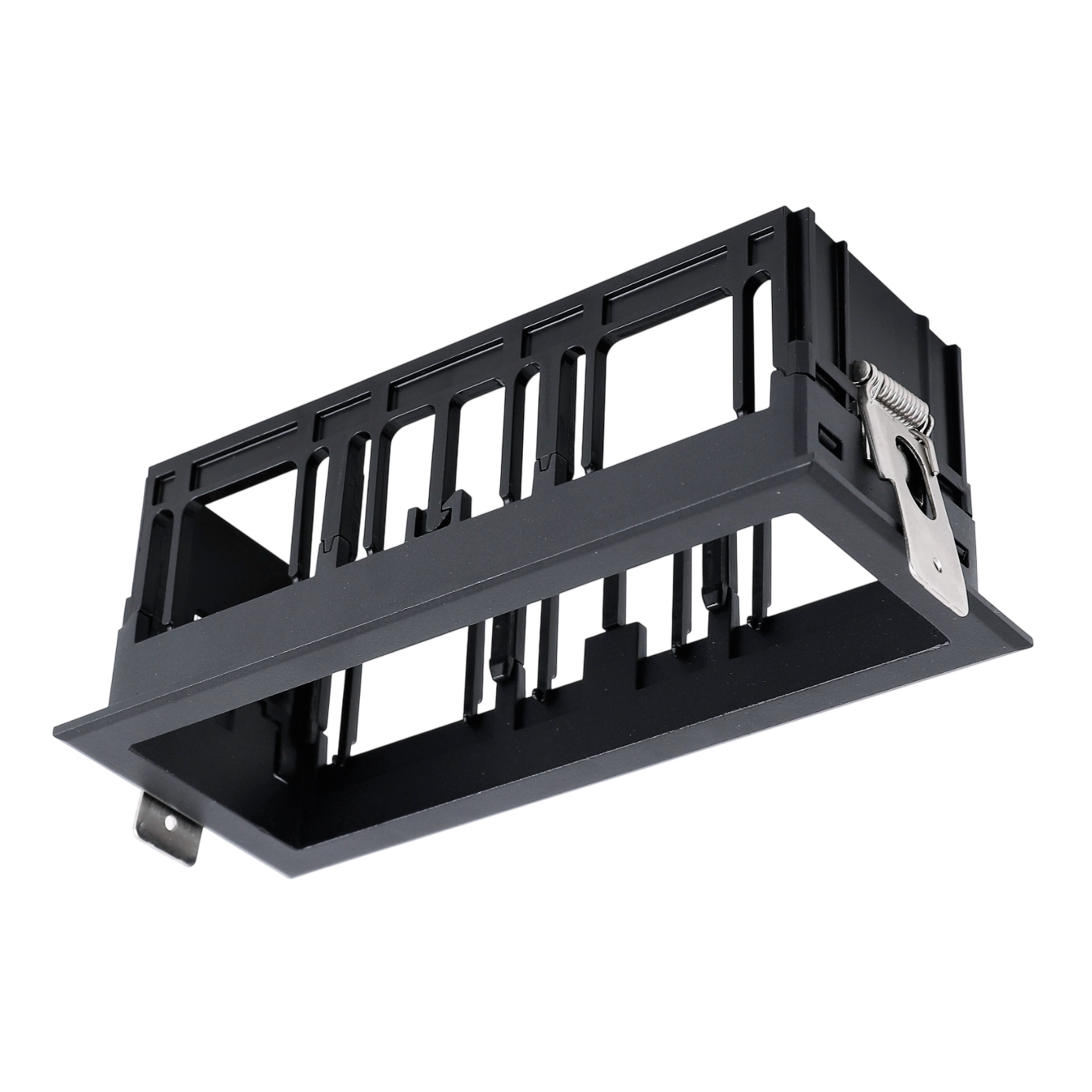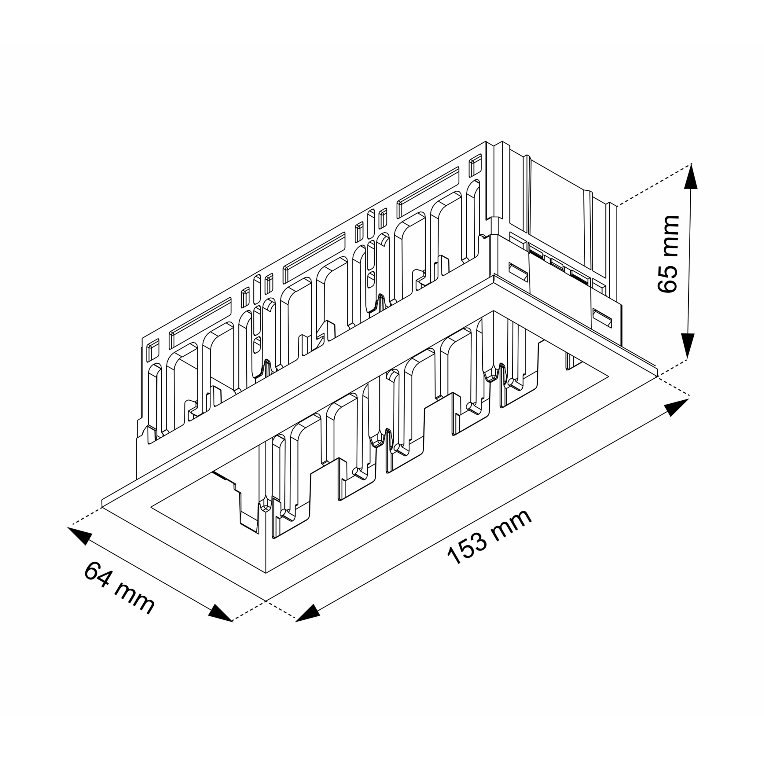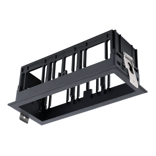 Каркас встраиваемый с видимой рамкой на 3 модульных светильника, черный, монтажное отверстие (прямоугольное) 145х55 мм, размер видимой части 153х64 мм, высота 65 мм
