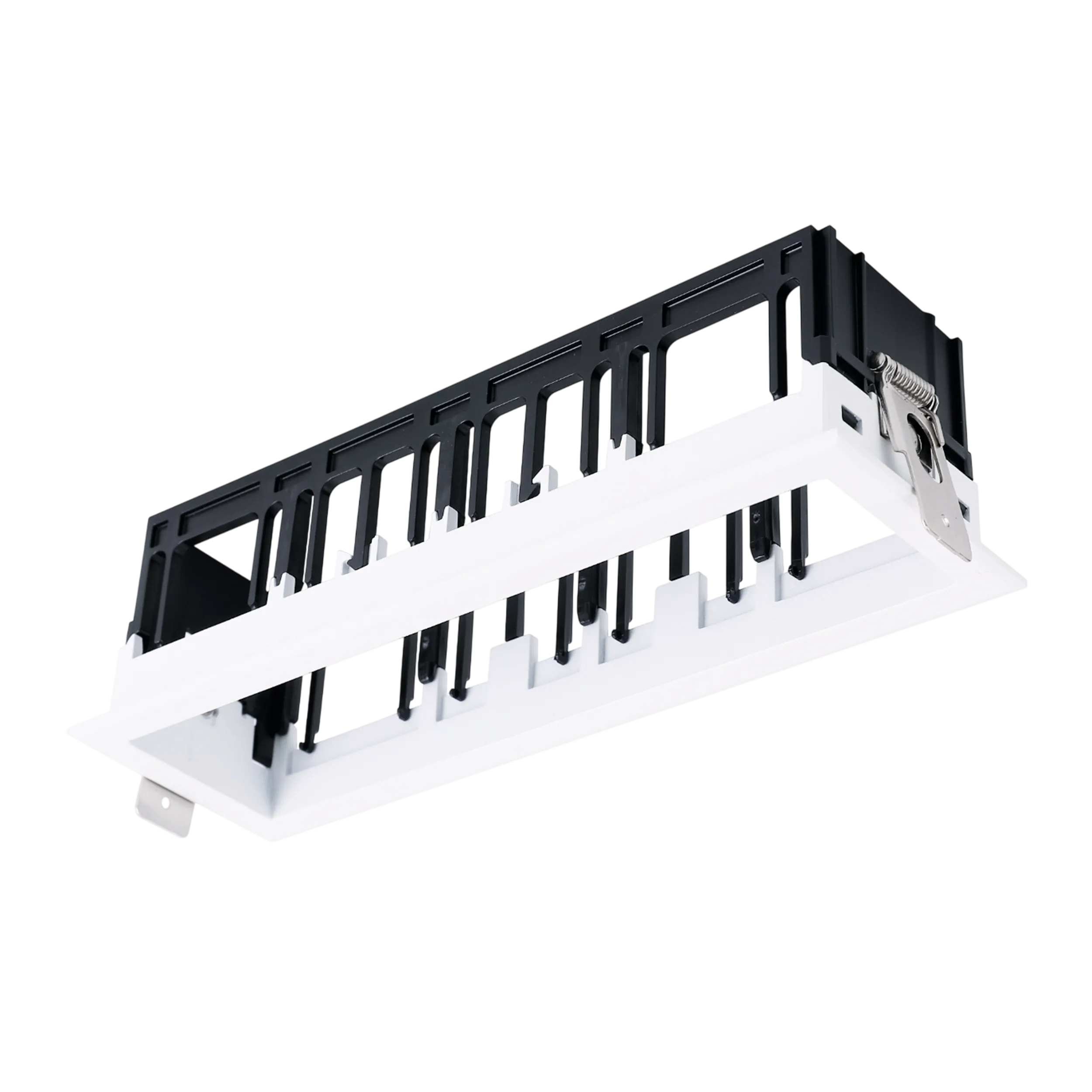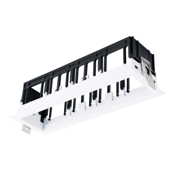 Каркас встраиваемый с видимой рамкой на 4 модульных светильника, белый, монтажное отверстие (прямоугольное) 192х55 мм, размер видимой части 197х64 мм, высота 65 мм