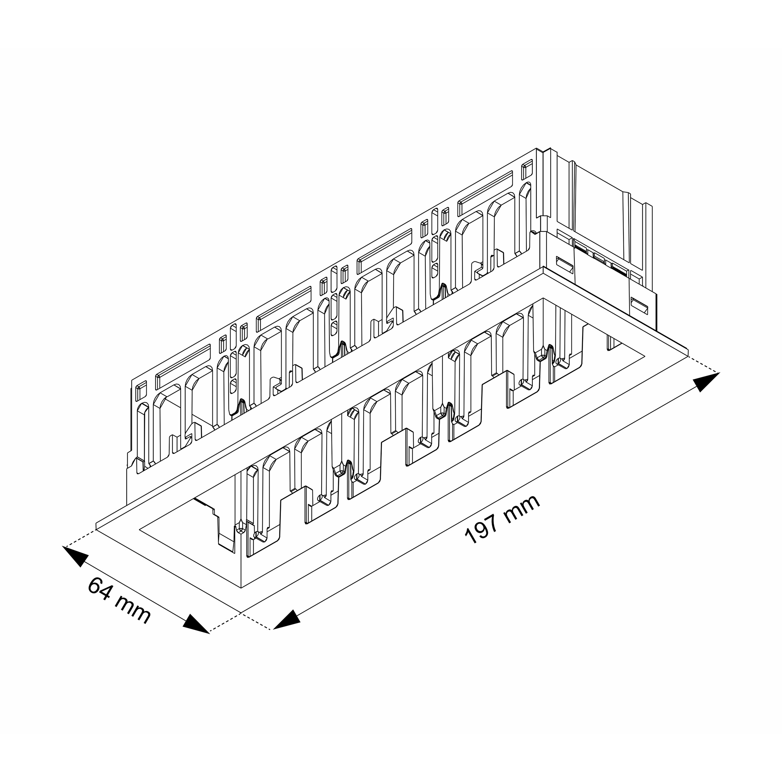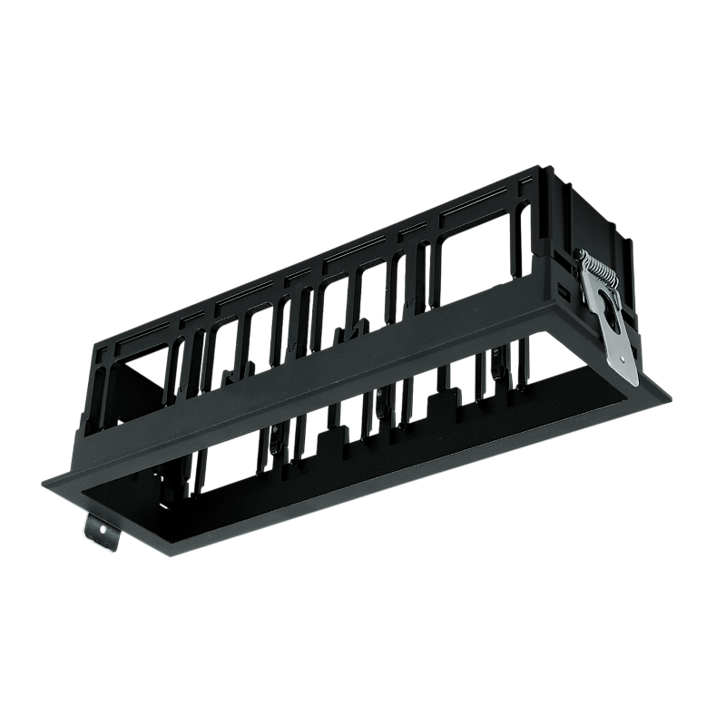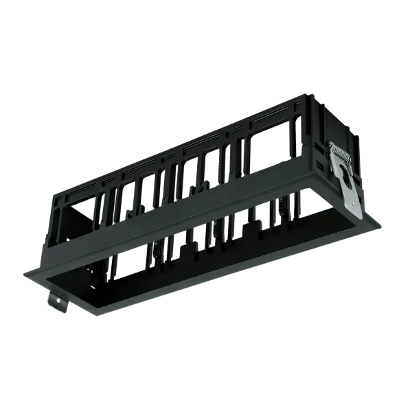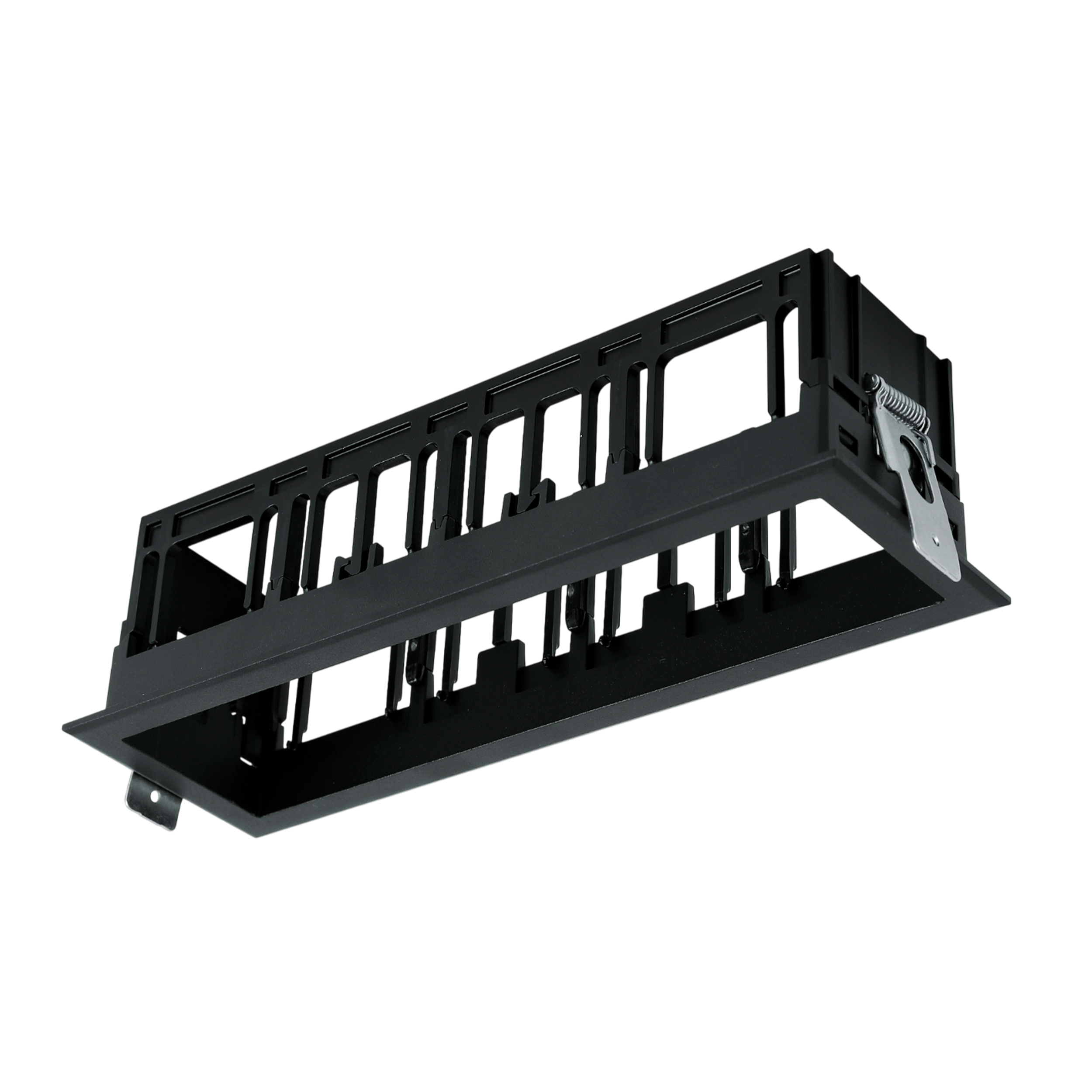 Каркас встраиваемый с видимой рамкой на 4 модульных светильника, черный, монтажное отверстие (прямоугольное) 192х55 мм, размер видимой части 197х64 мм, высота 65 мм