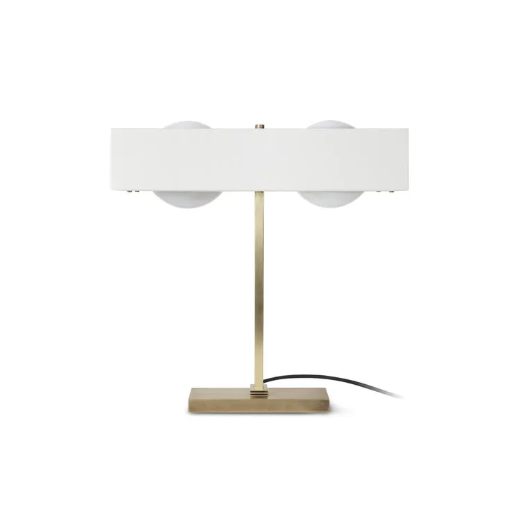 Твердая латунная основа и угловатая форма настольной лампы Kernel смягчаются теплым свечением опаловых стеклянных шариков. Неожиданная детализация в латунном диффузоре и блики придают роскошный вид.