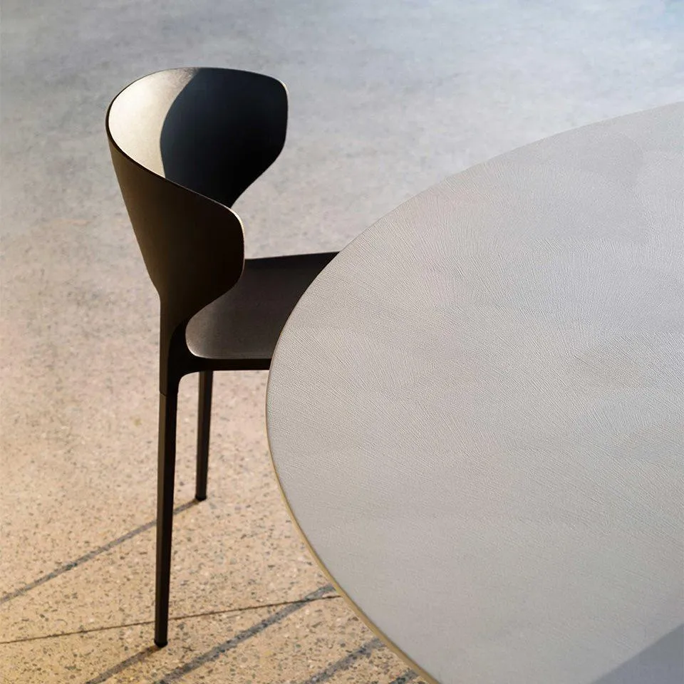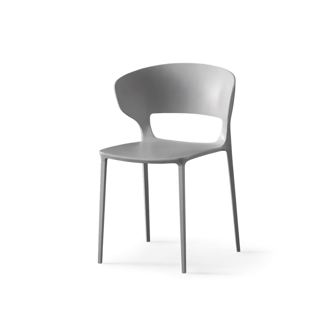 Стул-штабелер с автономным корпусом из цельного полиуретана, со стальной рамой. В зависимости от коллекции доступны различные цвета тисненого покрытия. Стальные ножки трубчатой конической формы квадратного сечения, покрытые лаком того же цвета, что и рама. Также подходит для использования на открытом воздухе.