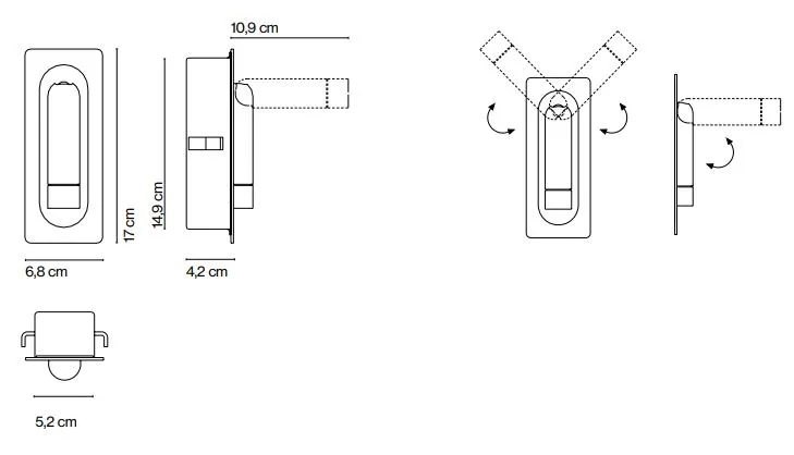 Его эргономичный дизайн позволяет поворачивать его в любом направлении, вплоть до 360°, а пользоваться им очень просто. При открытии он включается автоматически; при закрытии выключается и прячется в стене, как камуфляж. Он настолько универсален, что может устанавливаться вертикально или горизонтально, адаптируясь к потребностям вашего пространства.