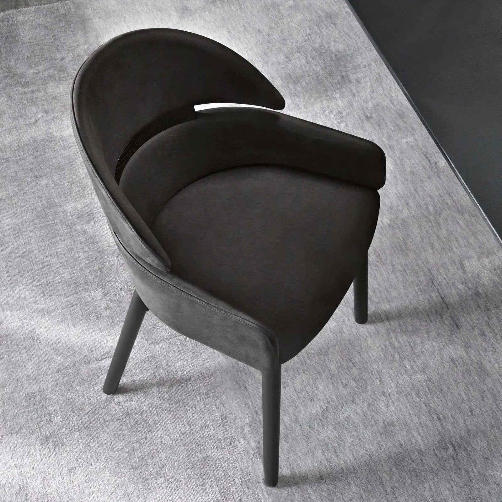 "Lloyd экспериментирует с гибридной типологией сидений, представляющей собой наполовину кресло, наполовину стул, которые так хорошо подходят для различных домашних и офисных нужд. Идея заключалась в том, чтобы создать кресло, но с элементами простого стула, у которого спинка часто отделена от поясничной области."