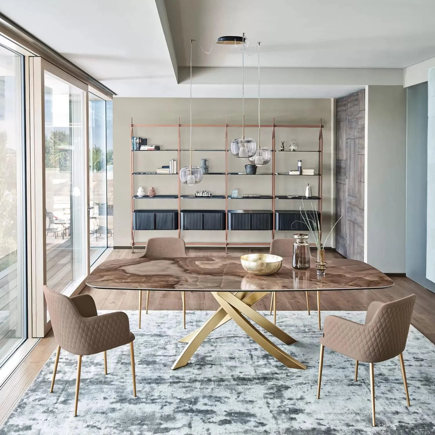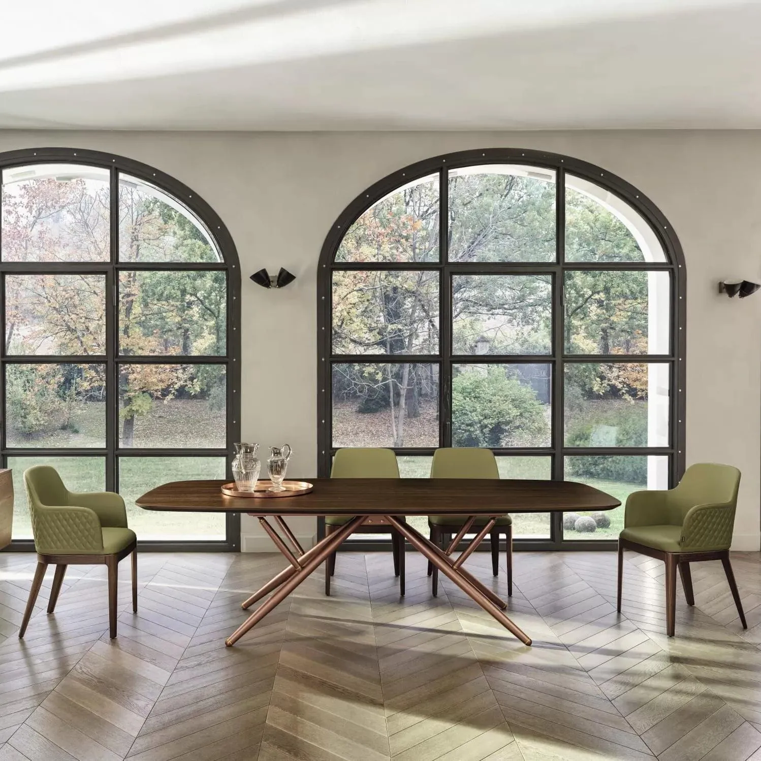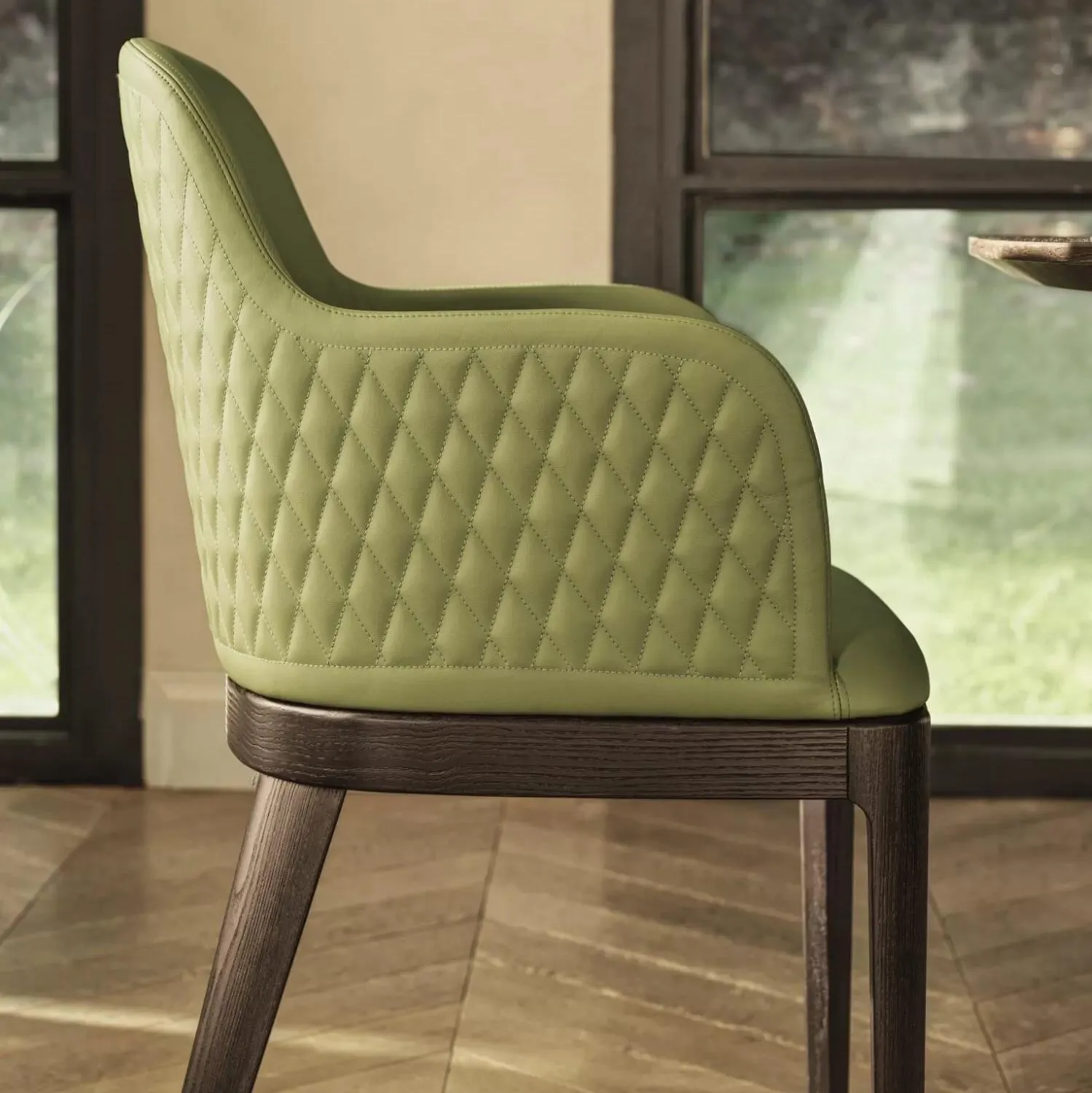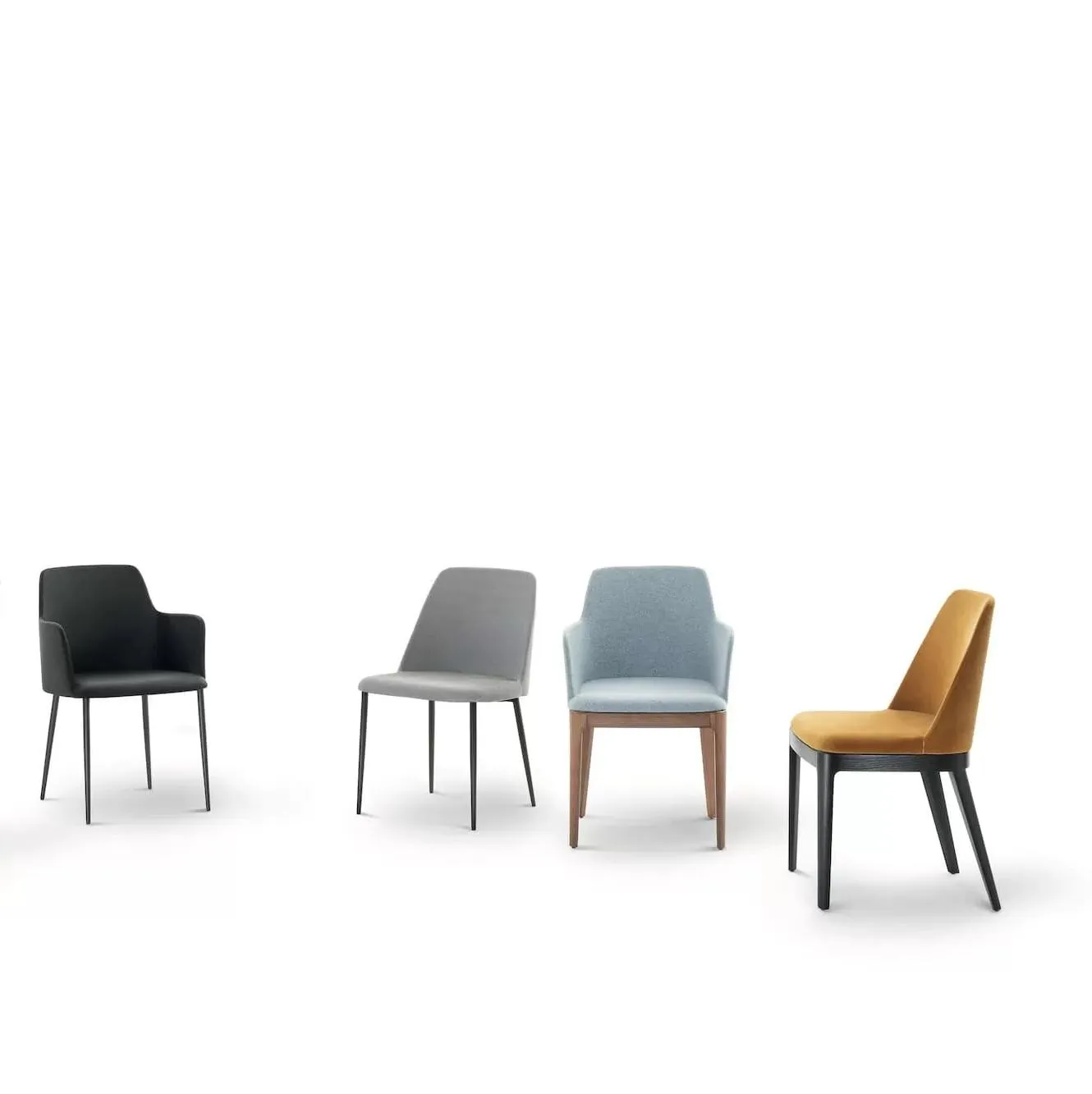 Стул с подлокотником на каркасе из массива дерева или металла, покрытого лаком. Обивка кресла выполнена из экокожи премиум-класса, ткани Bouquet, ткани для гурманов, скандинавской ткани, натуральной шерсти, бархата высшего качества и кожи Наппа премиум-класса. Также доступна версия со стеганой спинкой (только для ткани Nordic и высококачественной кожи nappa).