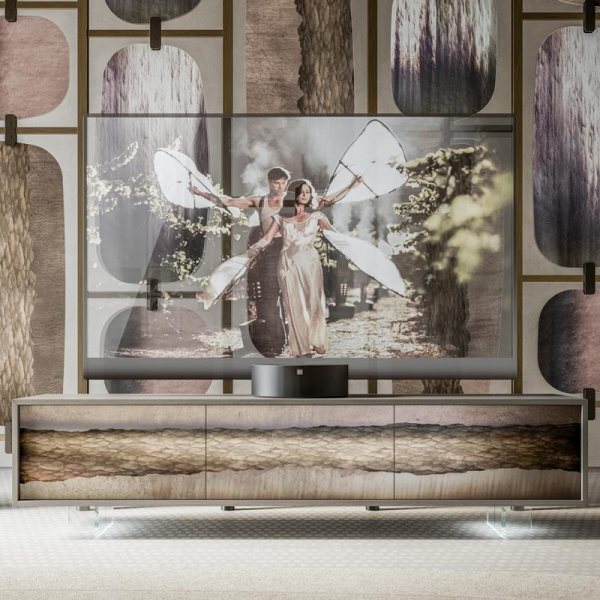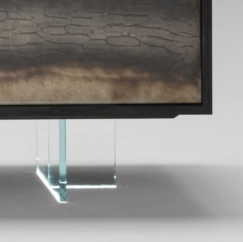 Три выдвижных ящика с передней панелью из закаленного стекла толщиной 8 мм с отделкой Roddi; открываются двухкратным нажатием.