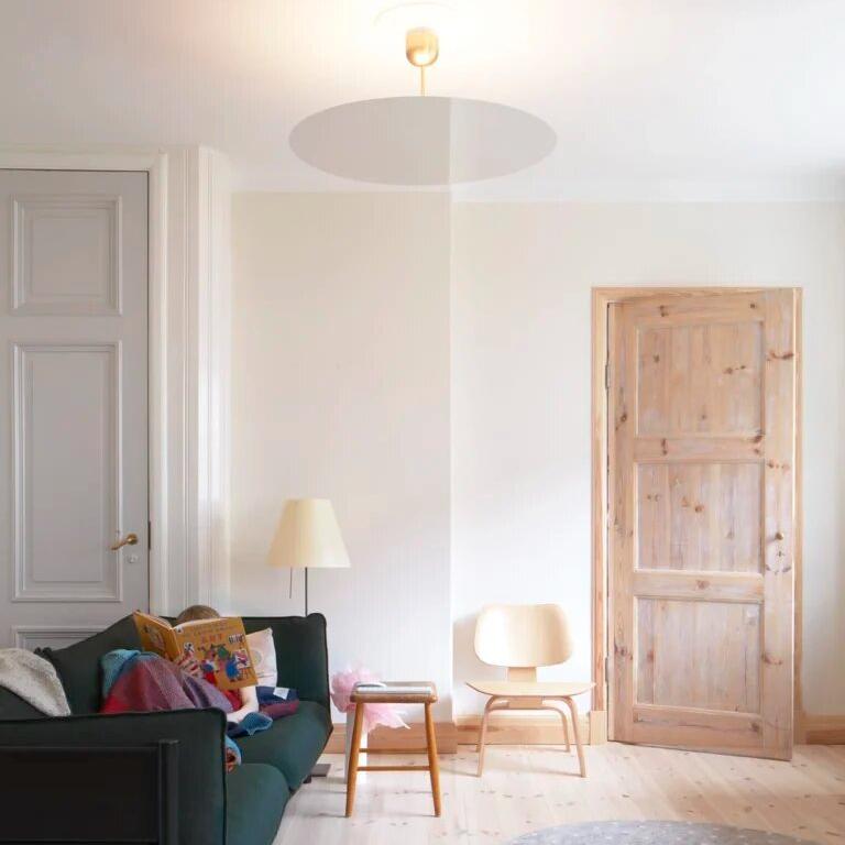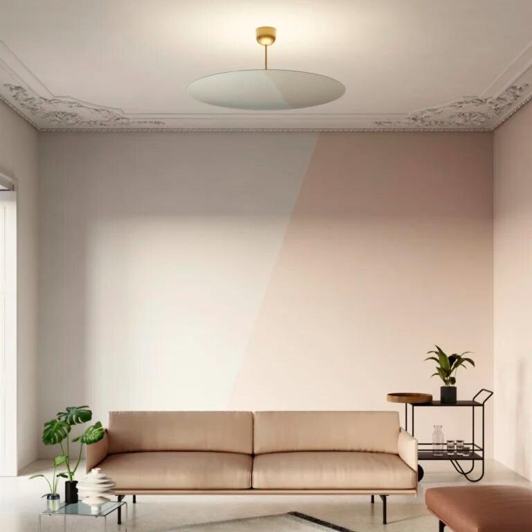 Millimetres представляет собой нечто среднее между подвесным и потолочным светильником и состоит из очень тонкого отражающего круглого диска (толщиной 1 мм), излучающего теплый, обволакивающий свет, направленный снизу вверх. Верхний колпачок прикреплен к ножке, которая поддерживает металлический диск с зеркальным покрытием. Светодиодный источник света, скрытый за диском, обеспечивает рассеянное и равномерное свечение. В соответствии с различными требованиями к монтажу, можно выбрать одну из четырех различных длин стержня, который соединяет корпус лампы с креплением на потолке.