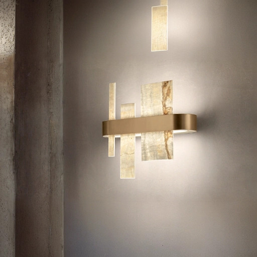 Настенный светильник Masiero из коллекции Honice из металла золотого цвета, рассеиватель из природного оникса.