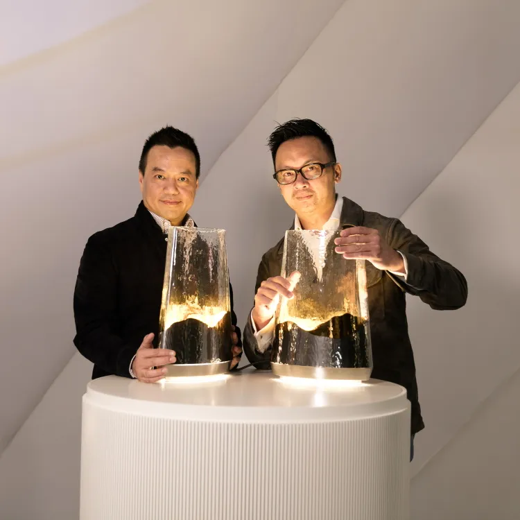 [~PREVIEW_TEXT] => Дизайнерская настольная лампа Flux, Table Lamp от Lasvit вдохновлена приглушенным светом океана у самого берега. Вспомните следы волн, медленно отступающие вглубь на фоне закатного солнца.