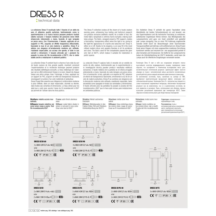 Включите светильник Dress R и лучи, прошедшие через поверхность и металлическое напыление, сделают абажур полупрозрачным. Освещение подобно вуали, которая будто висит в воздухе и наполняет атмосферу притягательностью и соблазном. Светильники Dress R от Моросини с восхитительной грацией готовы войти в современный интерьер домов и квартир, заняв в них свое особое место.