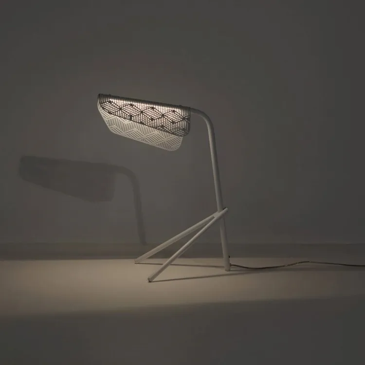 Коллекция декоративных настольных ламп MÉDITERRANÉA от Petite Friture - это невесомость и легкость. Французский дизайнер Noé Duchaufour-Lawrance (Ноэ Дюшафур-Лоранс) был вдохновлён средиземноморьем. Свежий морской ветер раздувал бельё на белоснежных балконах местных жителей, что показалось Ною великолепным образом для его будущих творений. Дизайнерская настольная лампа Медитэррэнэа отражает в своей текстуре мысль автора. Тонкий металл изогнутой формы с удивительной геометрической перфорацией делает абажур похожим на легкую развивающуюся ткань. Свет струится сквозь рисунок, ложась отраженными и прямыми лучами на стены и стол.