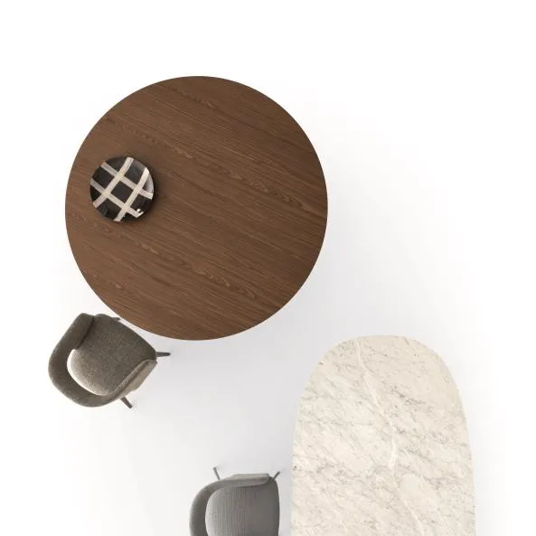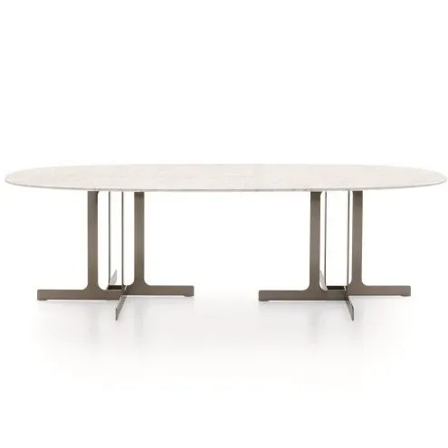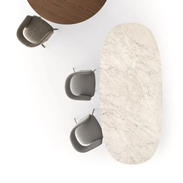 NELL - коллекция столов с контрастной столешницей из дерева, мрамора или стекла, опирающейся на чрезвычайно легкую раму.