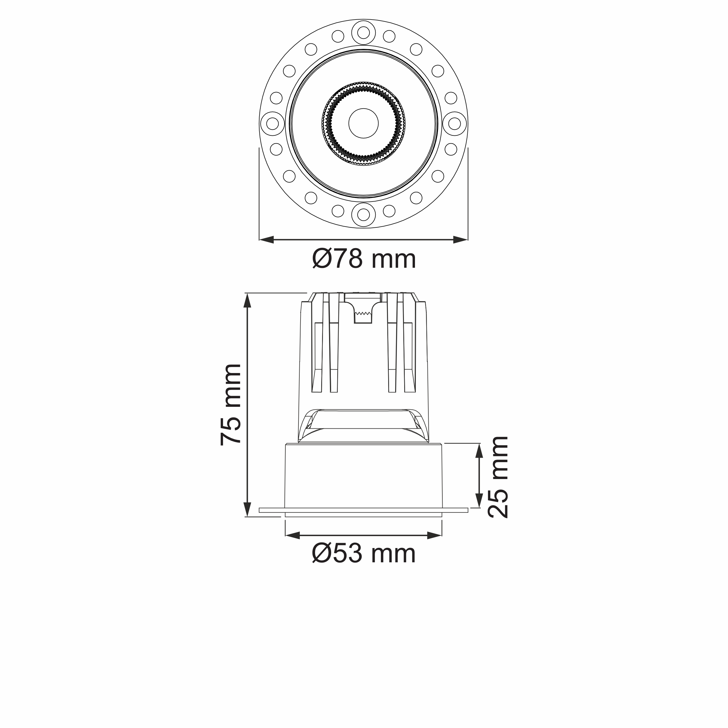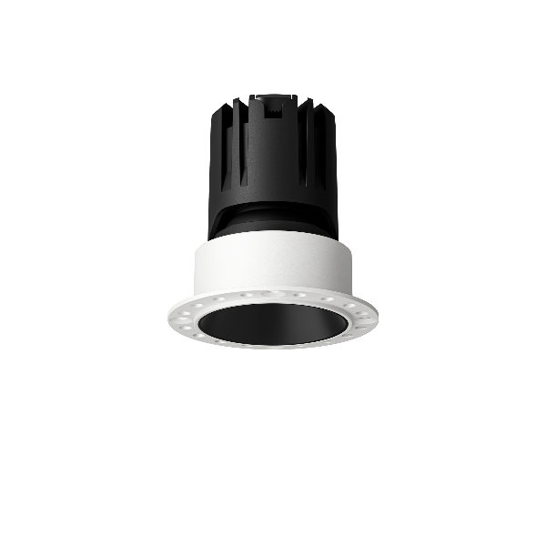 Встраиваемый светодиодный светильник, безрамочный круглый каркас, черный рефлектор, 220V, 7W, 3000K/4000K, 640Lm, 24°/36°/60°, CRI≥90, IP44, Ø монтажного отверстия 55 мм, видимая часть 53 мм, высота 75 мм