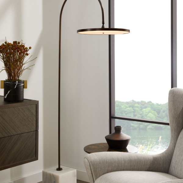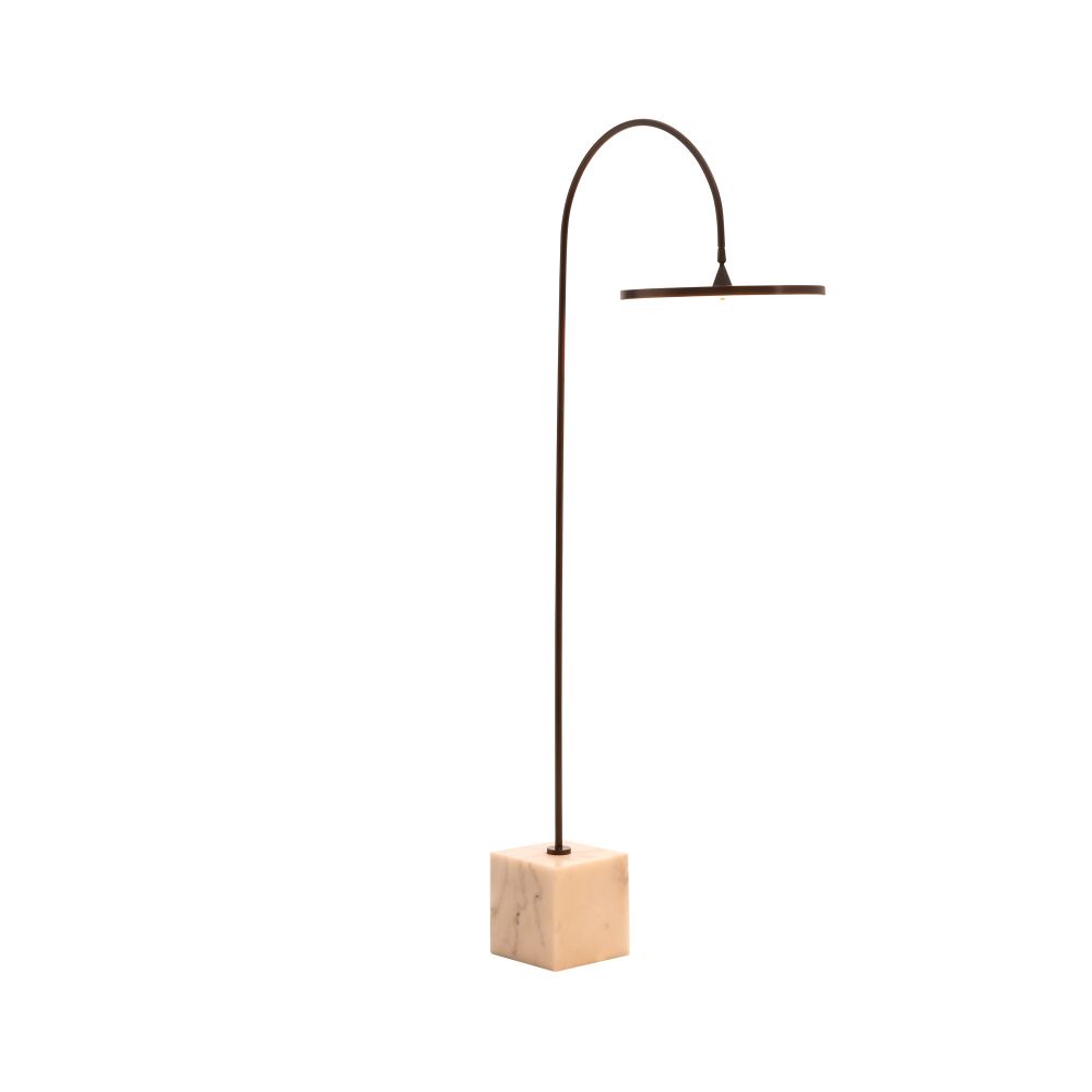 Архитектурный стиль торшера Nuri основан на минималистском дизайне и использовании высококачественных материалов. Тонкий профиль имеет изогнутый силуэт из английской бронзовой стали, который плавно переходит в основание из белого мрамора. Соответствующий стальной диск скрывает светодиодную ленту с равномерным свечением и легко поворачивается, чтобы вы могли соответствующим образом направлять свет. Отделка и мрамор могут быть разными.