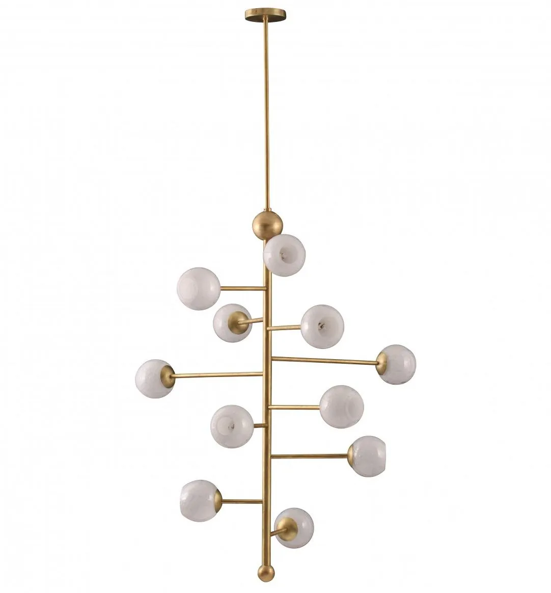 Современный и эффектныq подвесной светильник ORBIT 1 CEILING LIGHT. Часть нового семейства Orbit, это стройное сочетание тонкого фактурного латунного корпуса и элегантного молочного стекла, излучающего красивое атмосферное сияние. Верхняя часть этой лампы отделана драгоценным латунным самородком, который является данью моде в стиле ретро. Патинированная латунь, выдувное стекло.